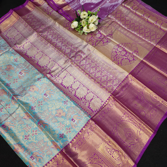This beautiful tissue Kanjivaram silk saree is a perfect pick for your special day. With its rich texture, elegant weaving, and timeless charm, it adds royal grace to your wedding look. A blend of tradition and luxury in every drape. #TissueKanjivaram #BridalElegance #WeddingSaree #SilkSareeLove #RoyalLook #TraditionalVibes #DrapeTheTradition #SouthIndianBride #LuxuryInWeaves #SareeGoals#ambicaweddingmall #hyderabad