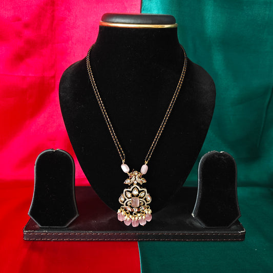 Beautiful Simple Black Beads Short In Baby Pink Stone