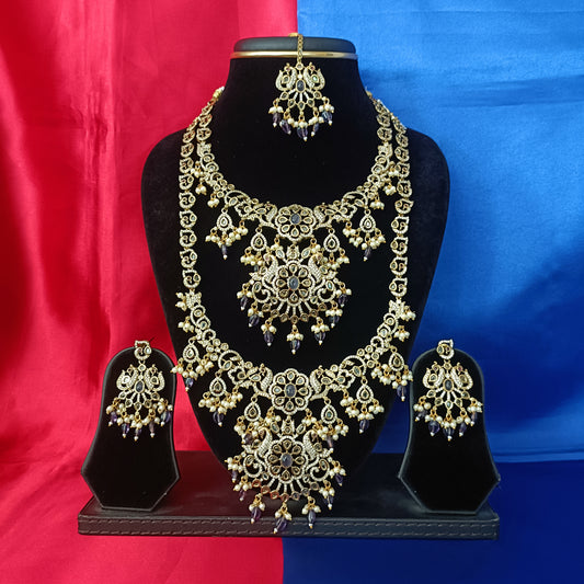 Elegant Victorian Bridal Combo Set In Purple Beads