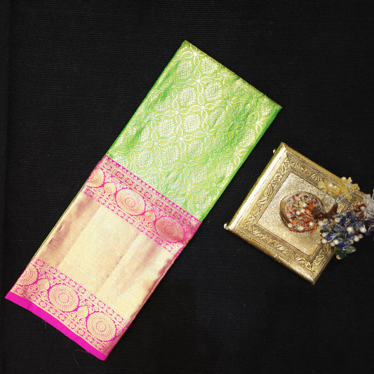 Kanchivaram pattu handloom lehengas are a perfect blend of traditional elegance and modern style. Crafted by skilled artisans using the finest silk yarn, these lehengas are known for their luxurious texture and intricate designs. Originating from the town of Kanchipuram in Tamil Nadu, India, Kanchivaram pattu handloom lehengas are a popular choice for brides and fashion enthusiasts alike. The vibrant hues, intricate motifs, and intricate weaving techniques make each piece a unique work of art. These timeless lehengas are sure to add a touch of grace and sophistication to any special occasion. Shop our exquisite collection of Kanchivaram pattu handloom lehengas and experience the magic of India's rich cultural heritage.