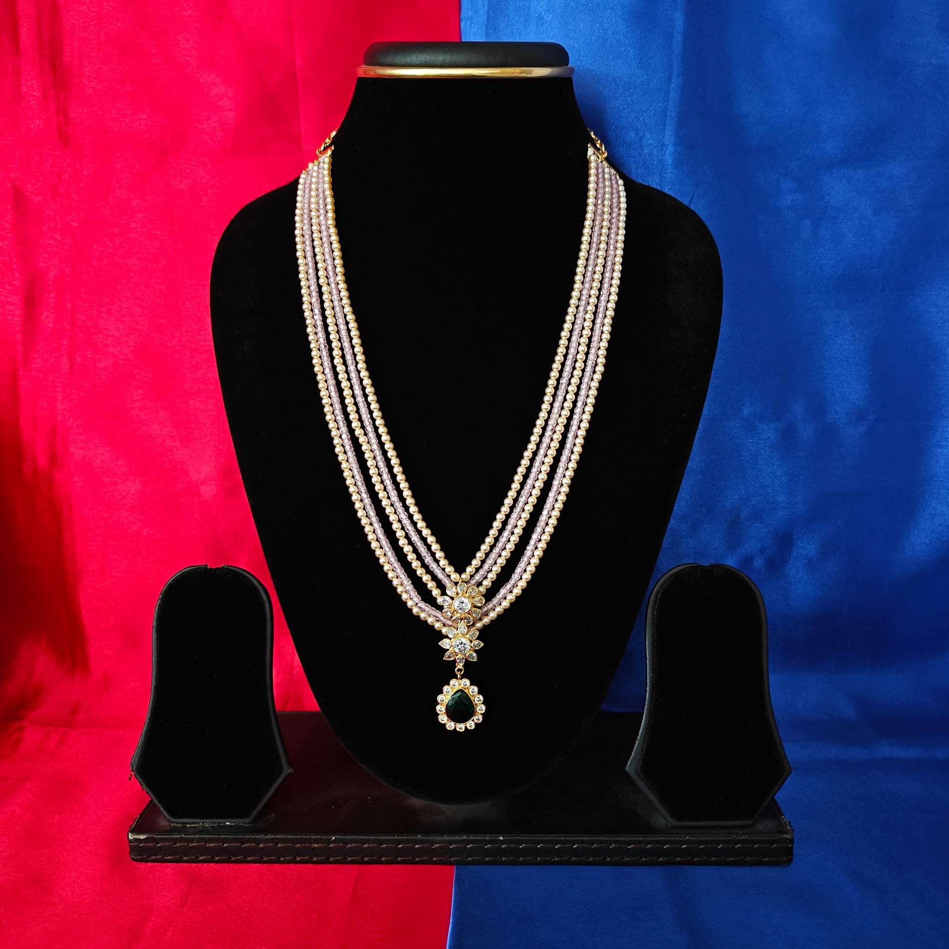 Beautiful Baby Pink Coloured Honex Mala In Green Stone With Pearls