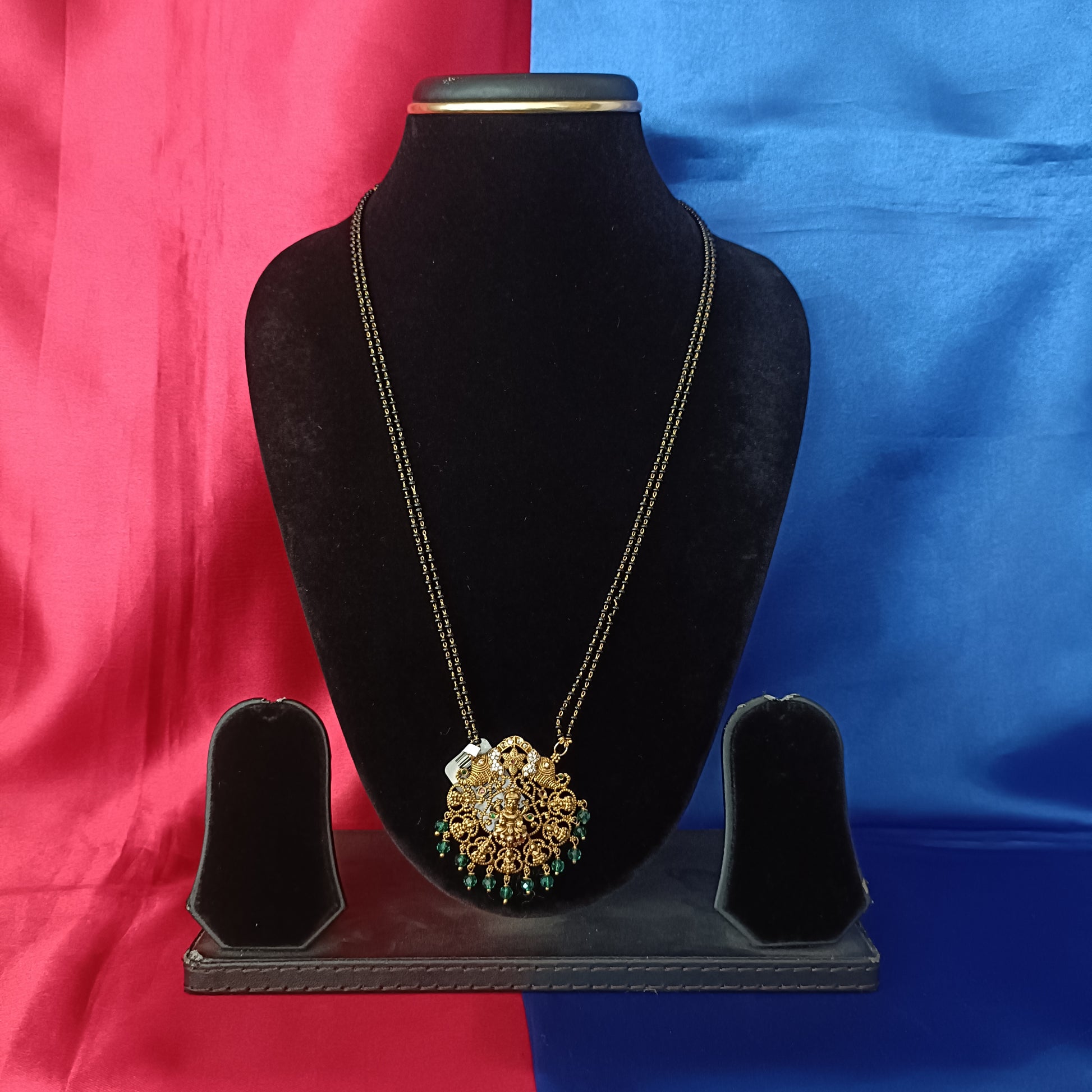 Beautiful Black Beads Long In Green Crystal
