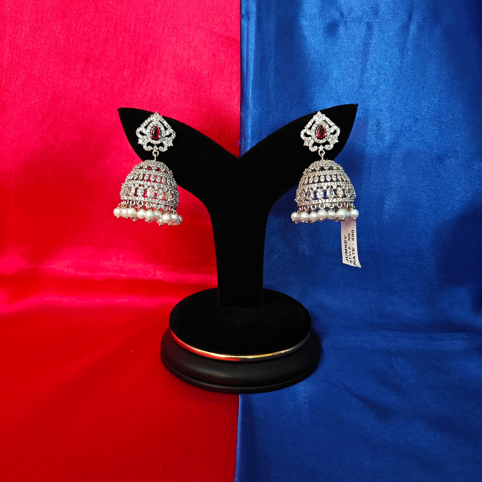 Beautiful Silver Jhumki In Red Stone