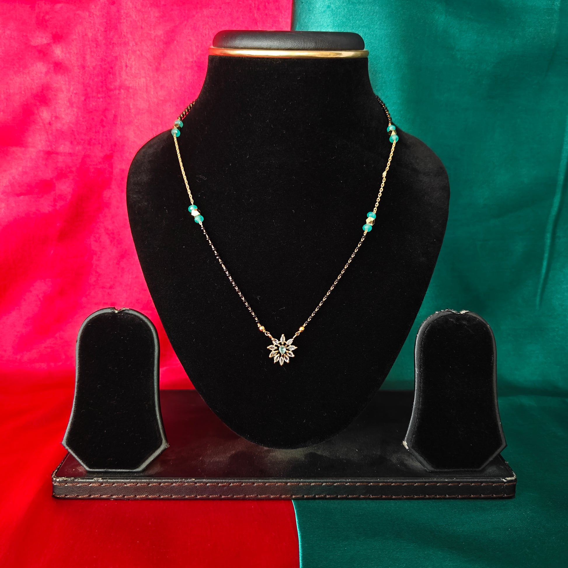 Beautiful Simple Black Beads Short In Pista Green Stone