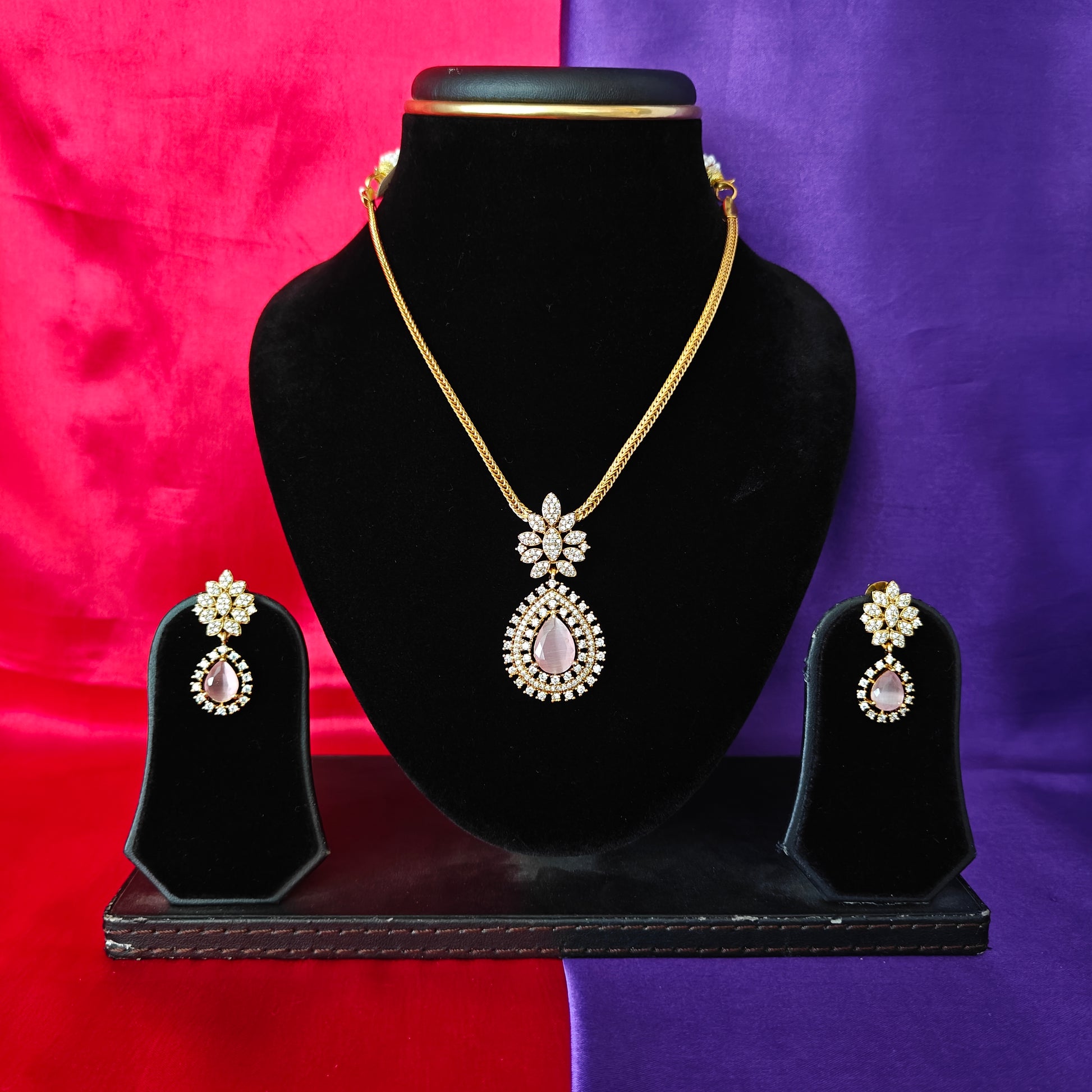 Beautiful Simple Non Necklace In Baby Pink Stone