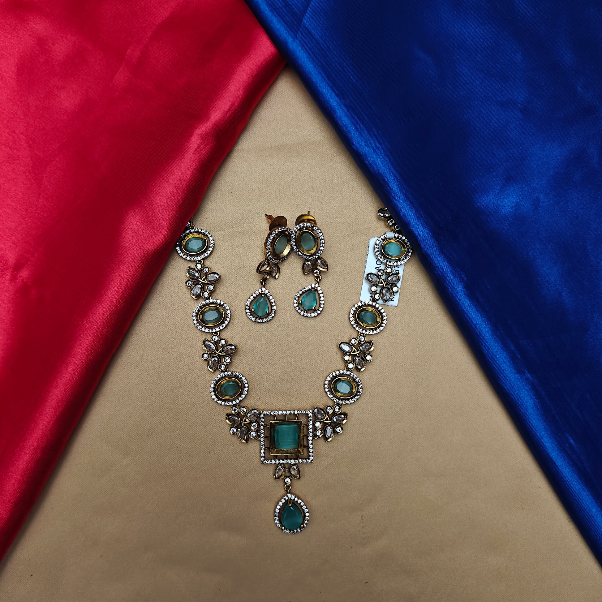 Beautiful Victorian Short Necklace In Pista Green Stone