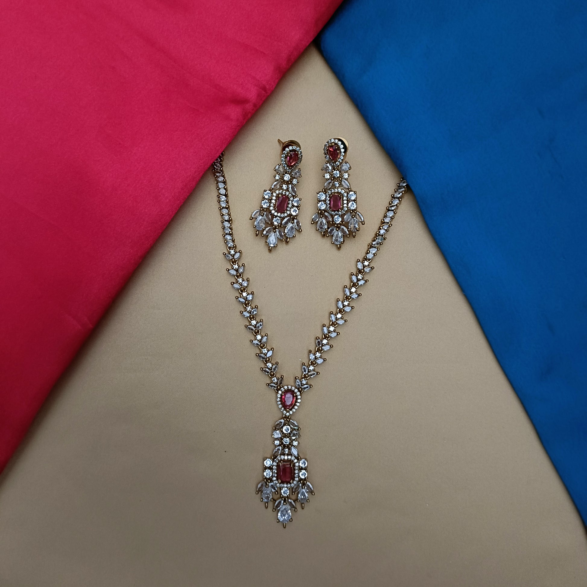 Beautiful Victorian Short Necklace In Red Stone