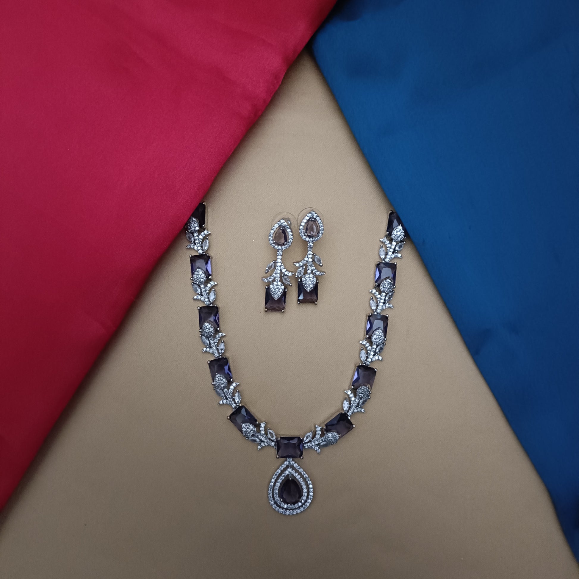 Elegant AD Short Necklace In Purple Stone