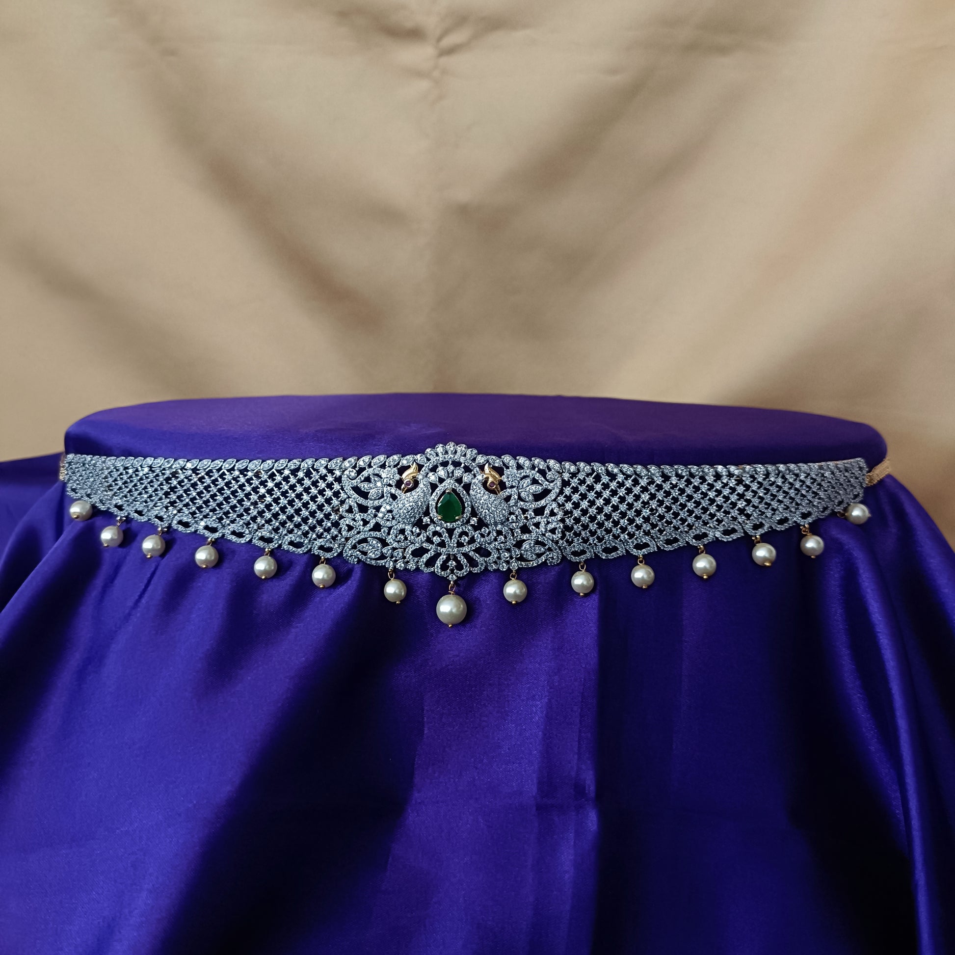 Elegant GJ Chain Type Vaddanam In Green Stone