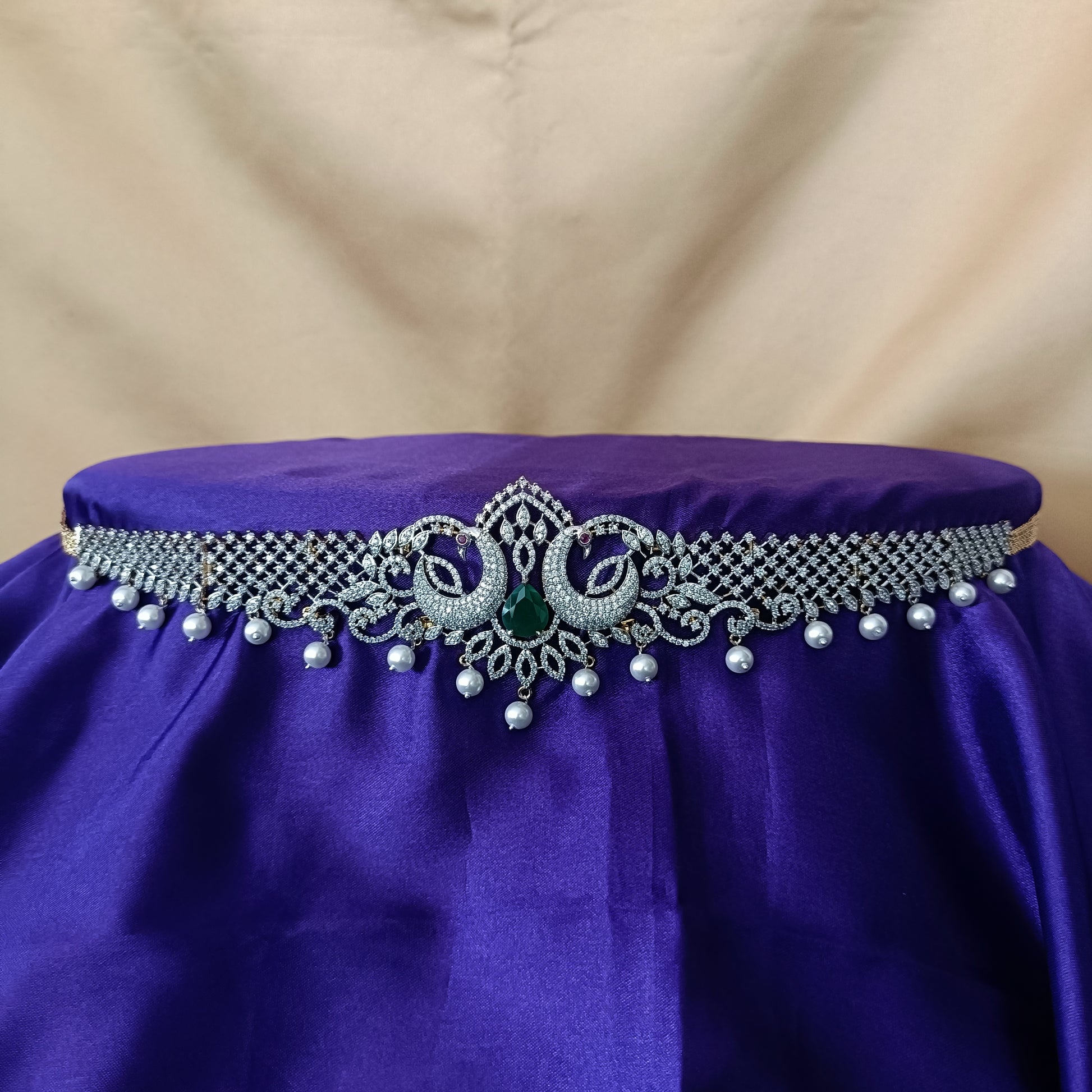Elegant GJ Chain Type Vaddanam In Green Stone