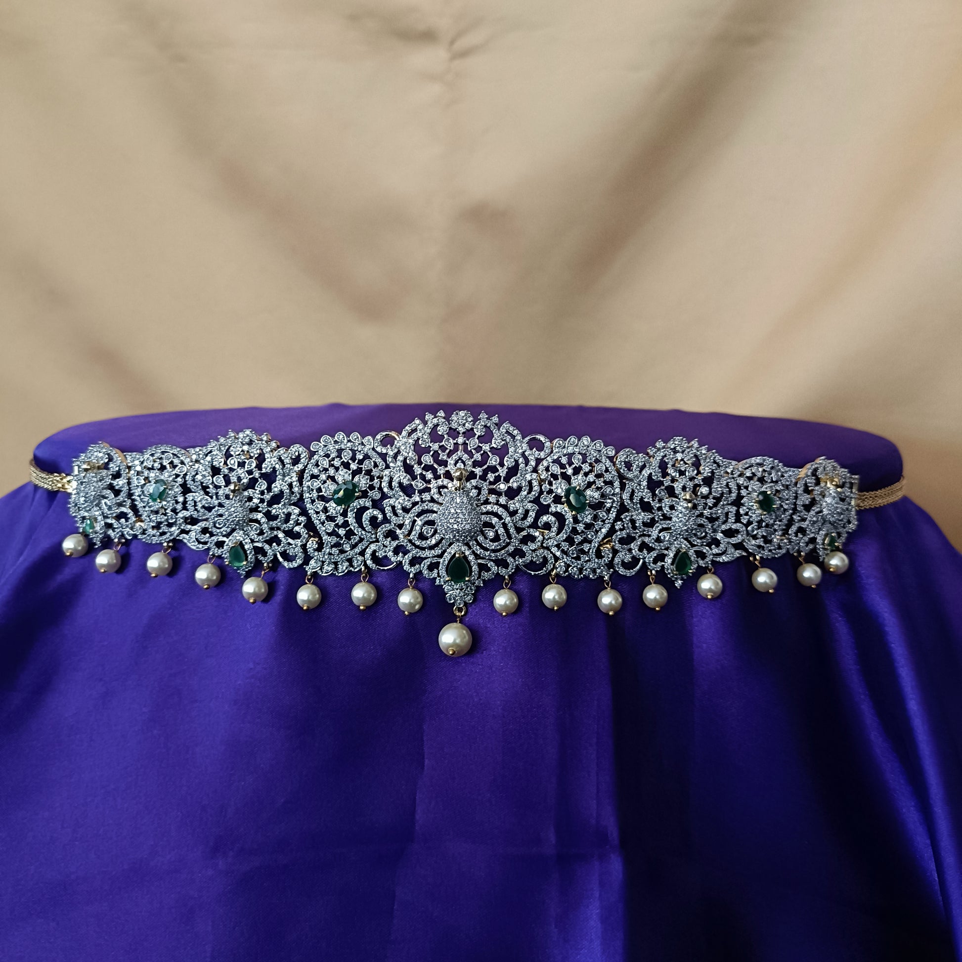 Elegant GJ Chain Type Vaddanam In Green Stone