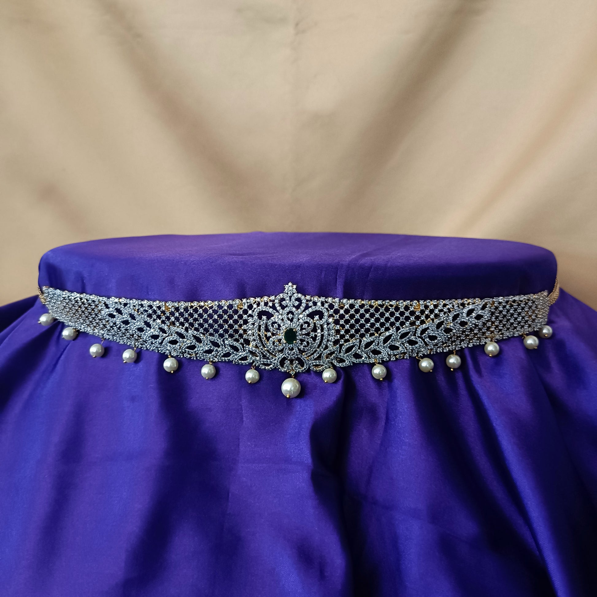 Elegant GJ Chain Type Vaddanam In Green Stone