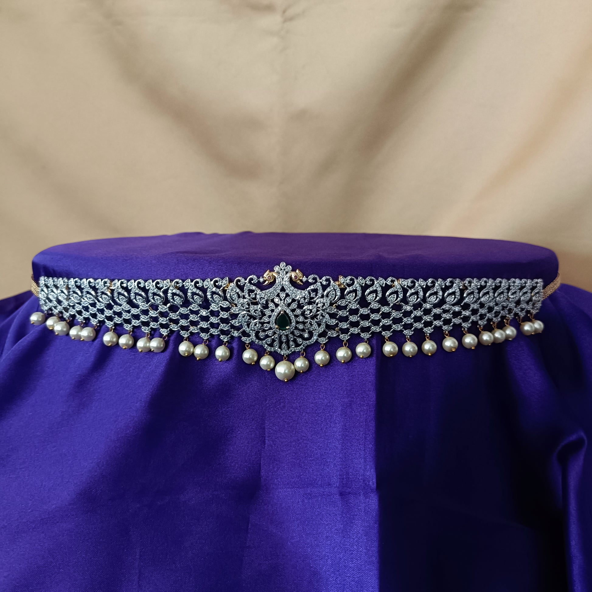 Elegant GJ Chain Type Vaddanam In Multi Colour Stone