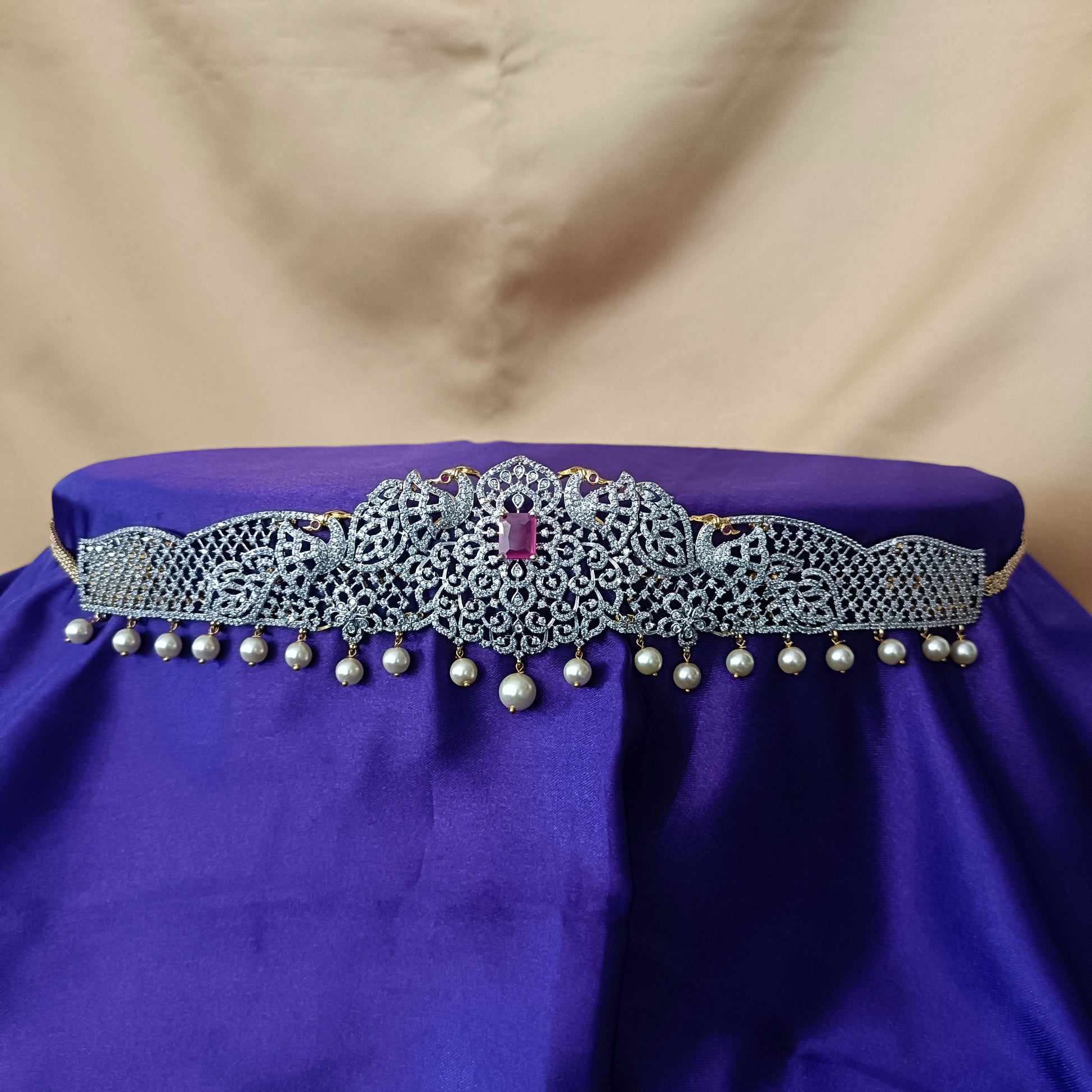 Elegant GJ Chain Type Vaddanam In Ruby Stone