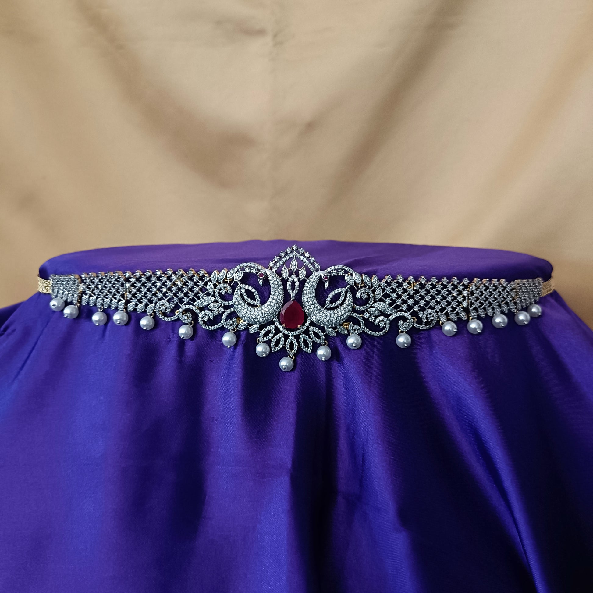 Elegant GJ Chain Type Vaddanam In Ruby Stone