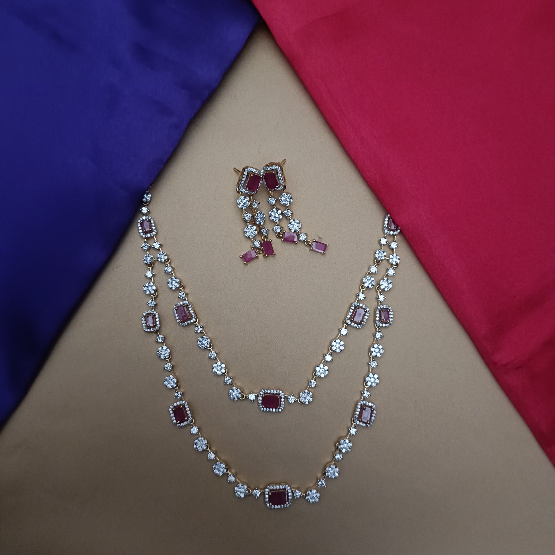 Elegant GJ Layered Short Necklace In Ruby Stone
