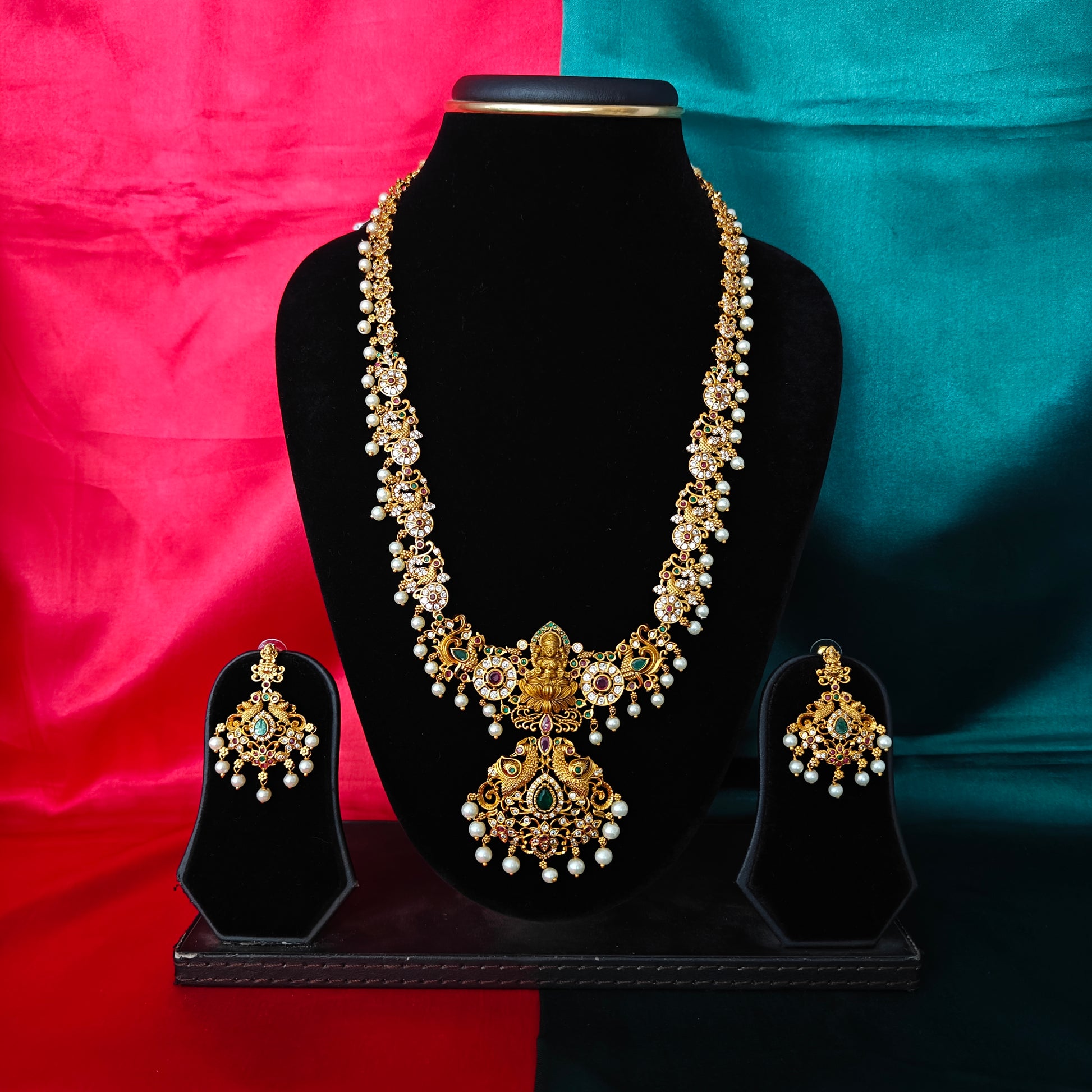 Elegant Nakshi Long Necklace With Laxmi Idol