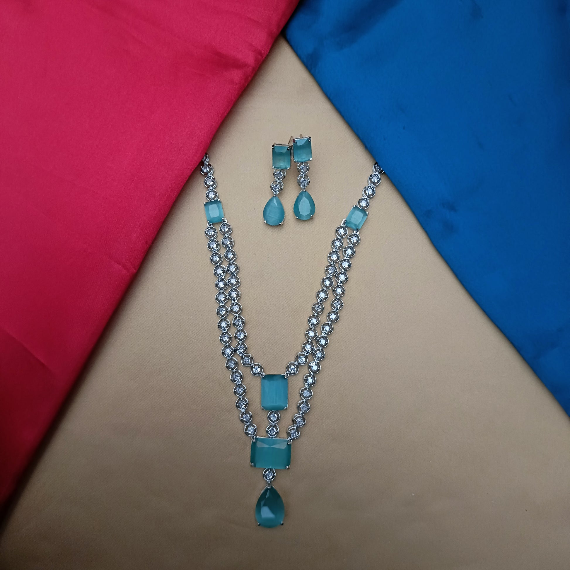 Elegant Silver Layered Short Necklace In Pista Green Stone