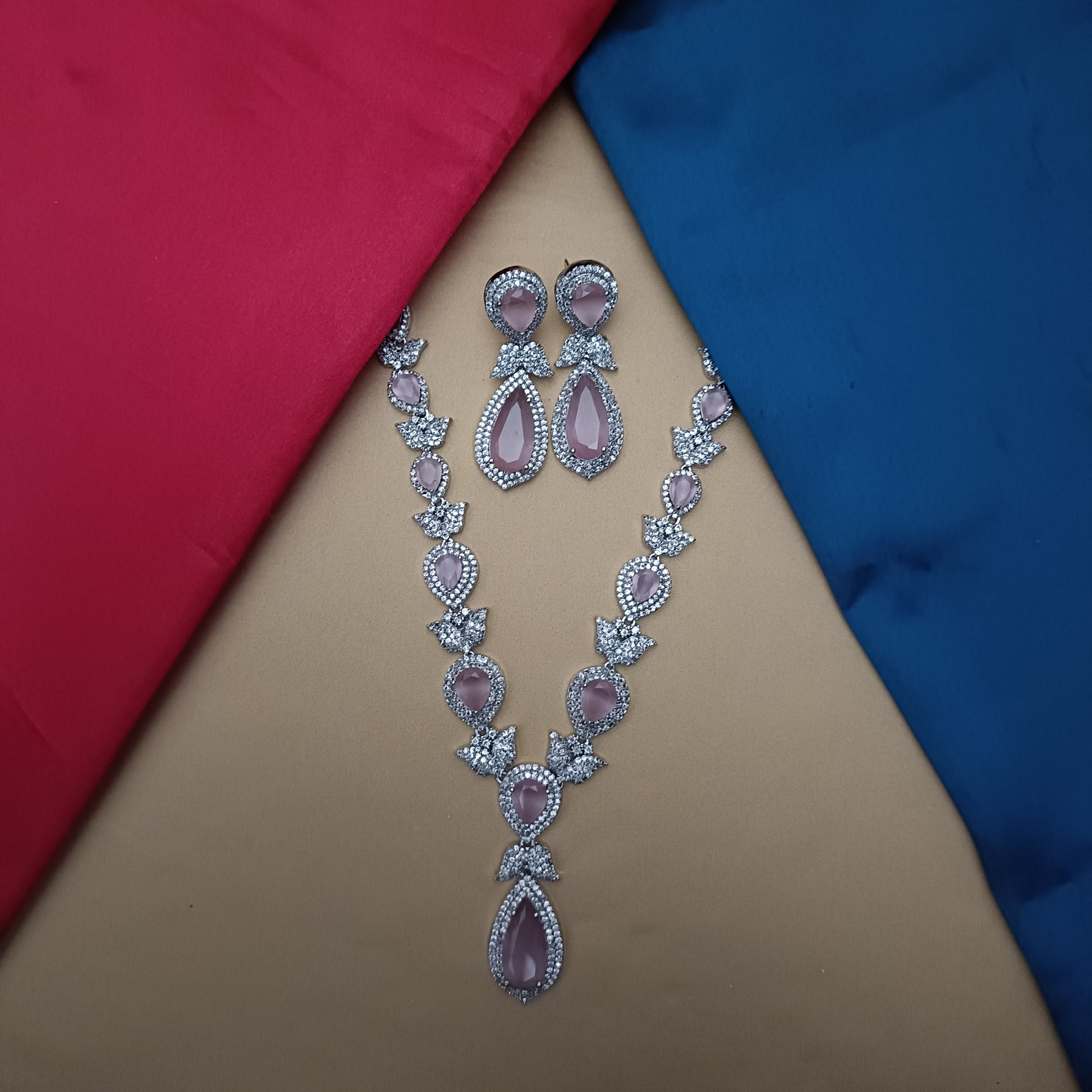 Elegant Silver Short Necklace In Baby Pink Stone