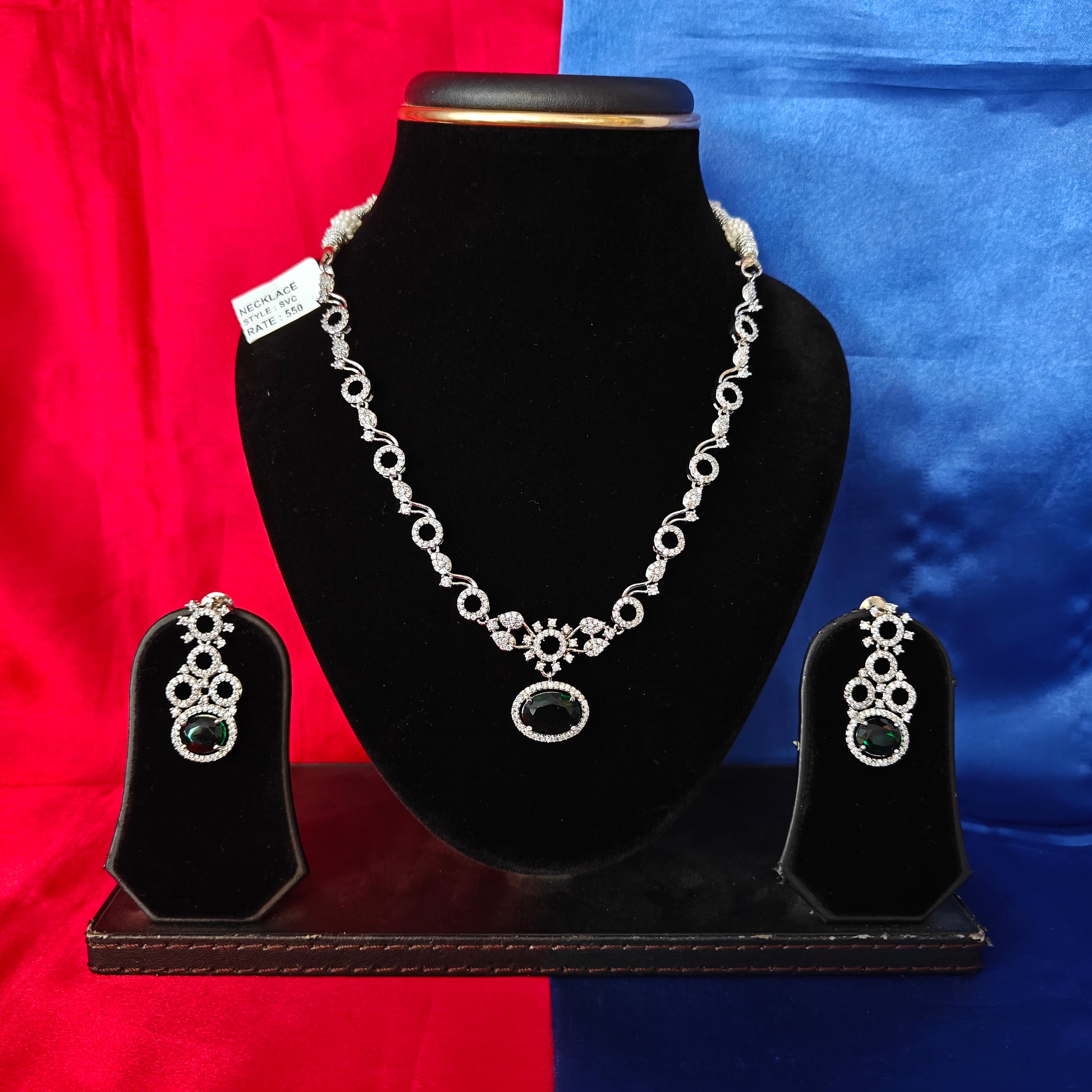 Elegant Silver Short Necklace In Green Stone