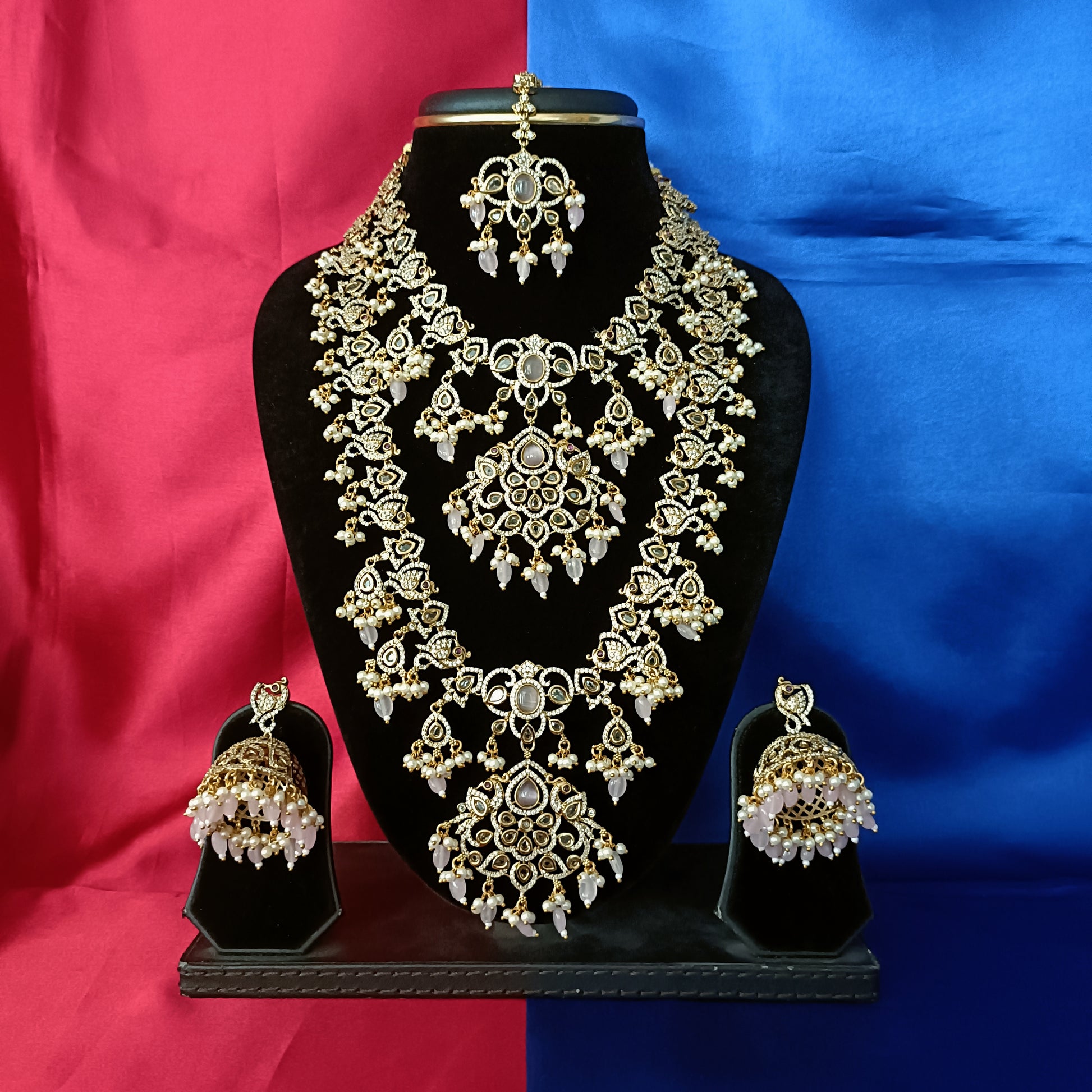 Elegant Victorian Bridal Combo Set In Baby Pink Beads