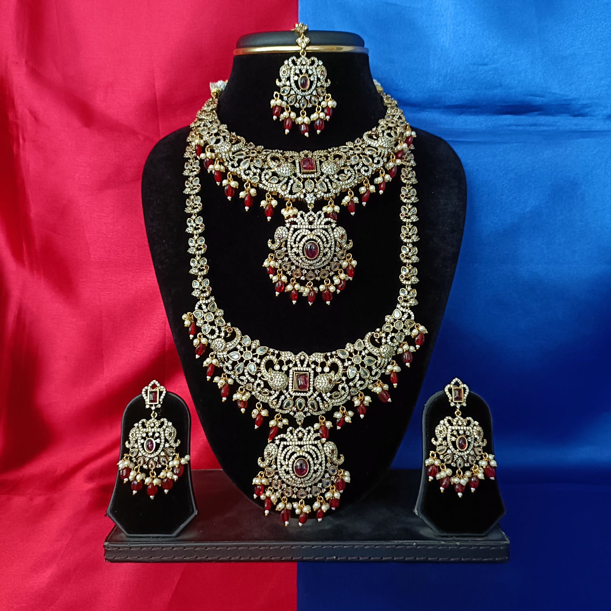 Elegant Victorian Bridal Combo Set In Maroon Beads
