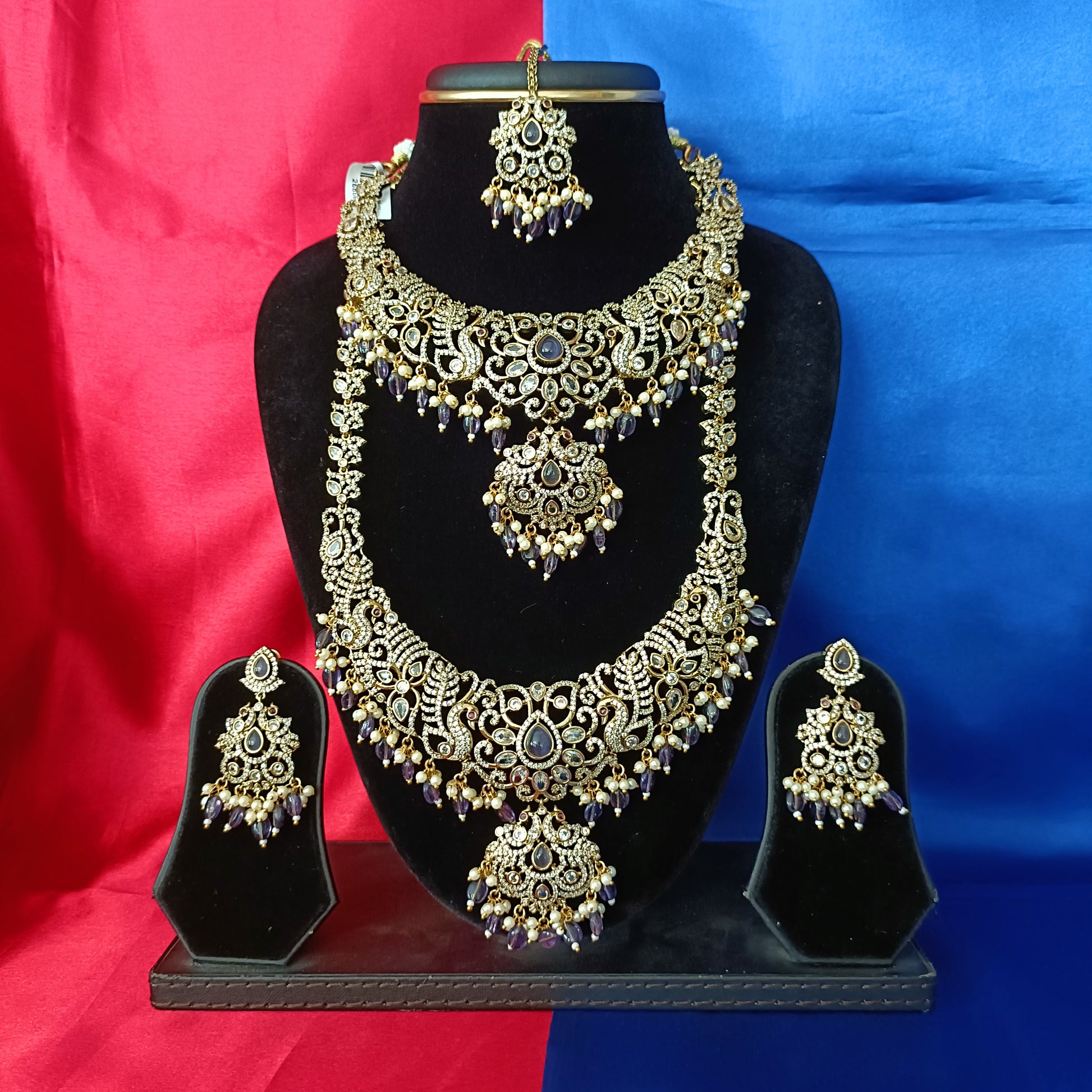 Elegant Victorian Bridal Combo Set In Purple Beads