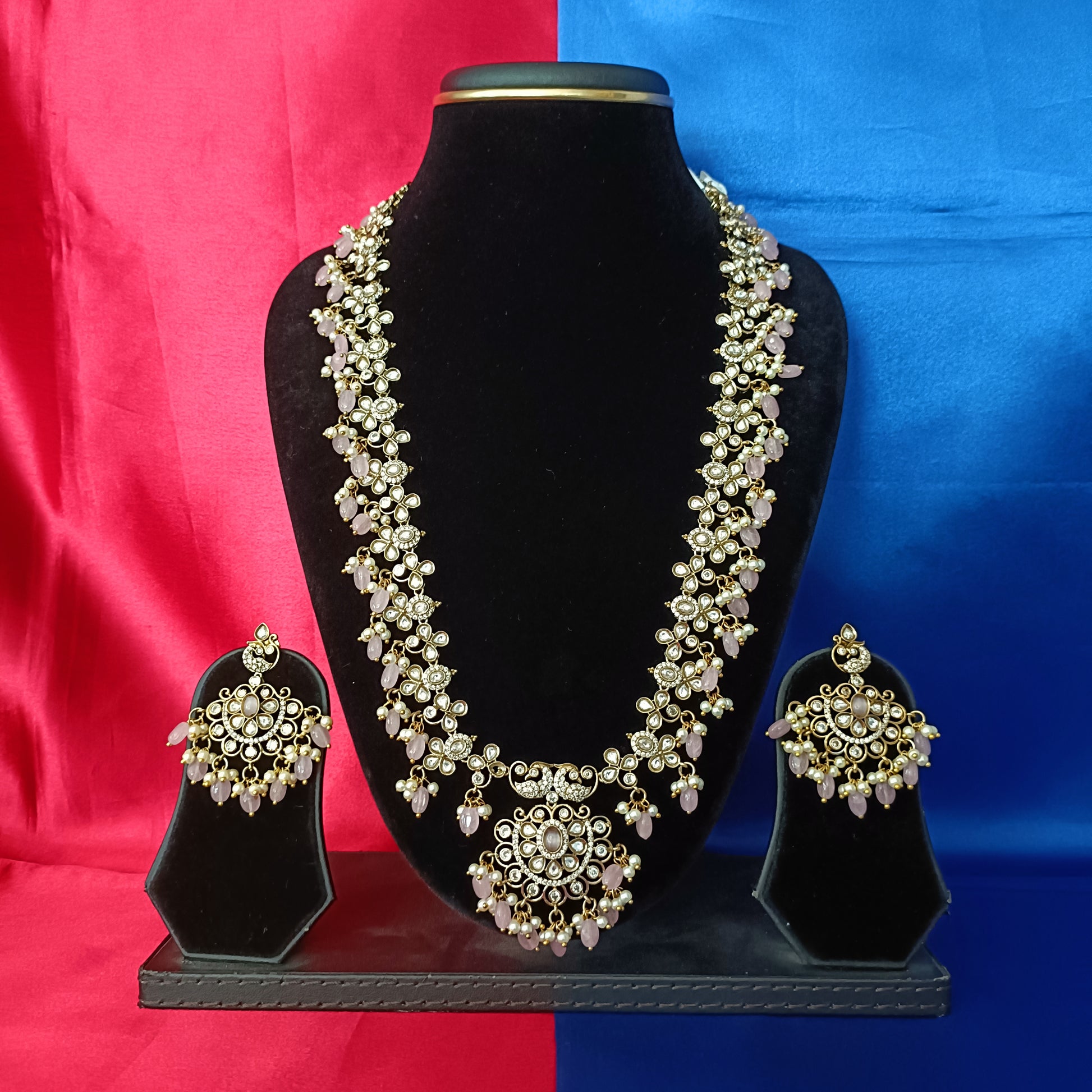 Elegant Victorian Long Necklace In Baby Pink Beads