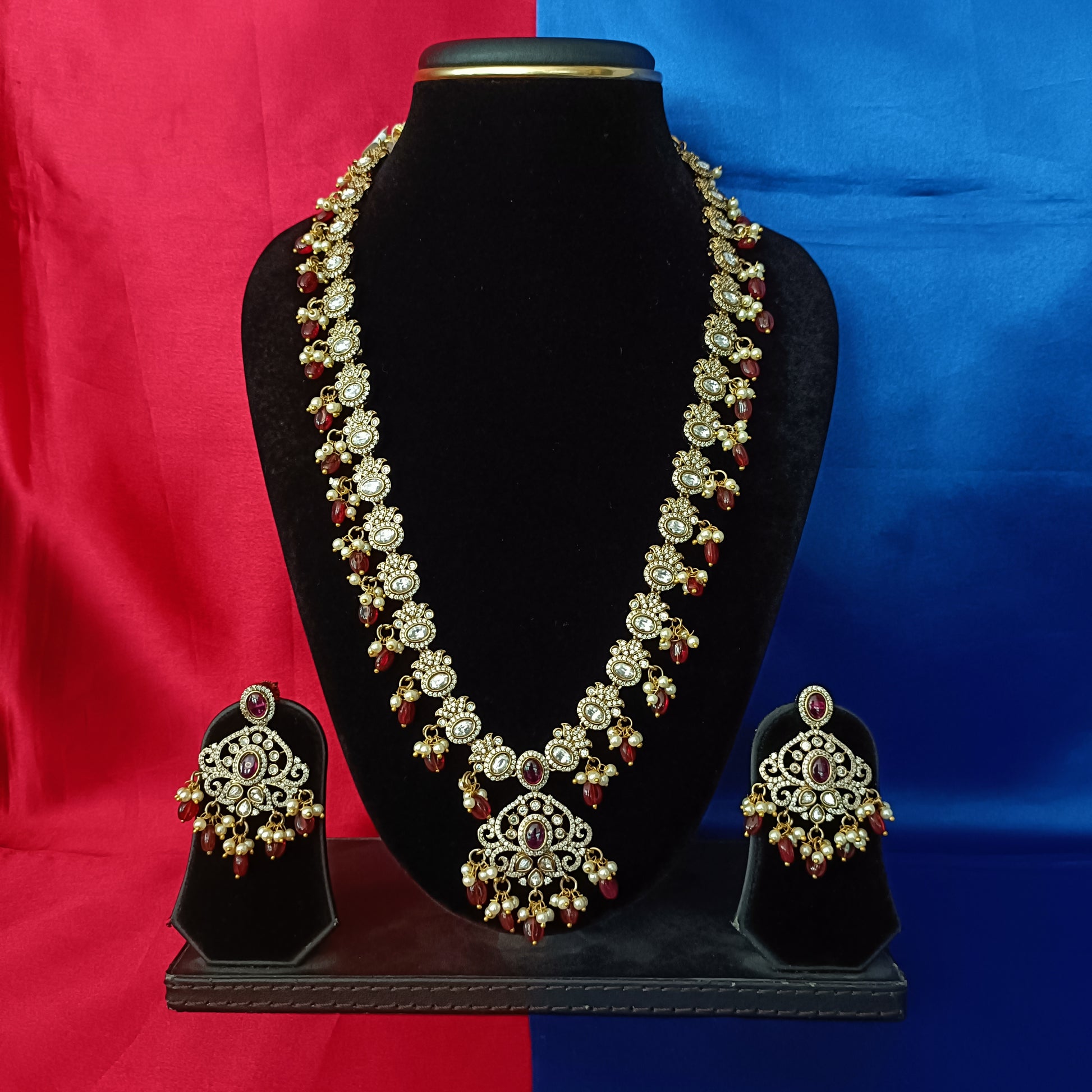 Elegant Victorian Long Necklace In Maroon Beads