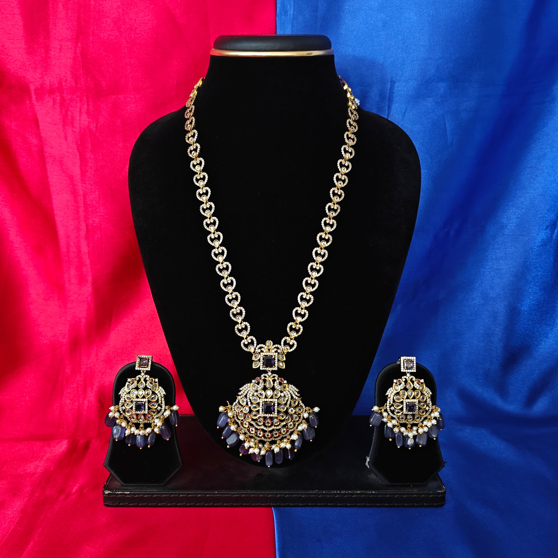 Elegant Victorian Long Necklace In Purple Beads