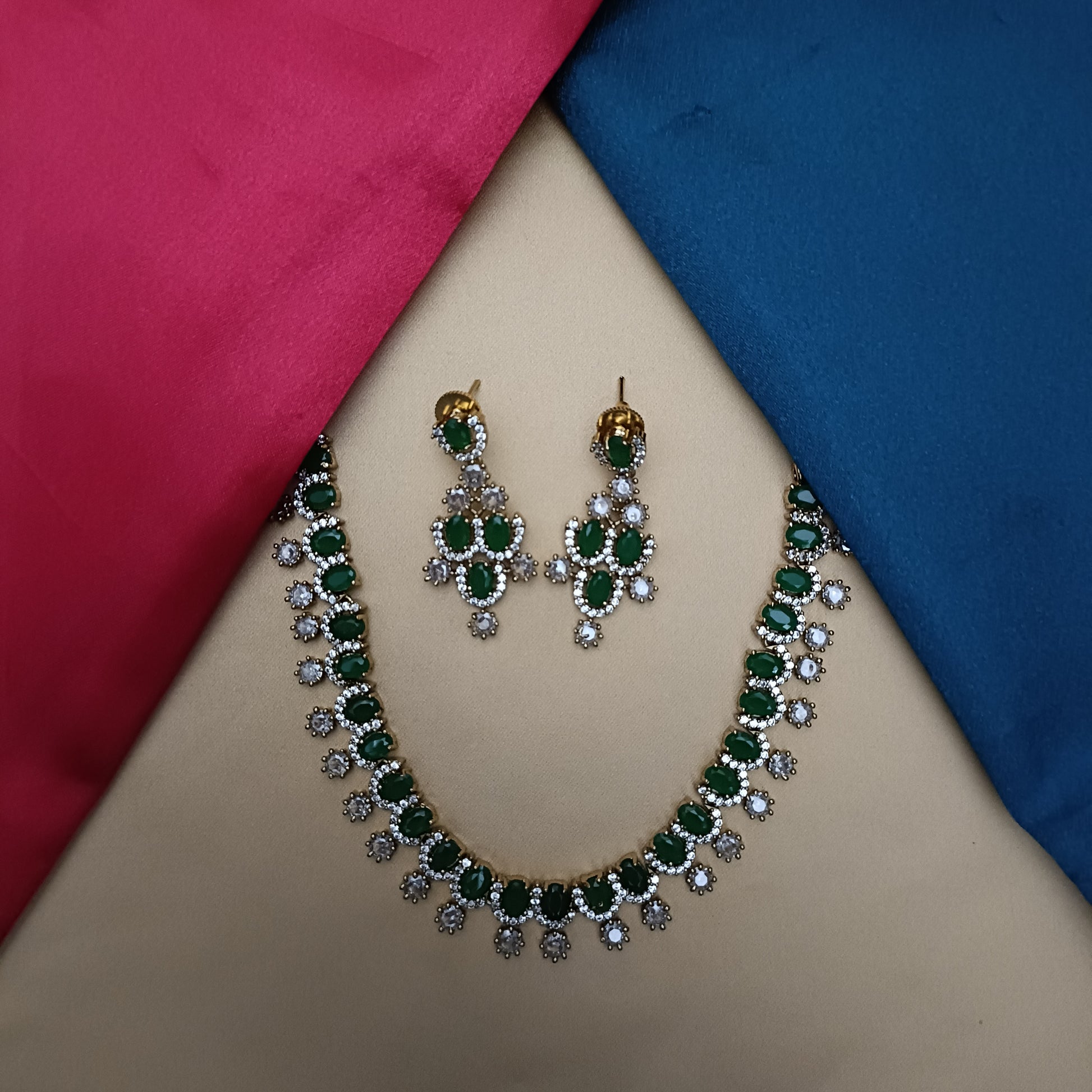 Elegant Victorian Mini Haaram In Green Stone