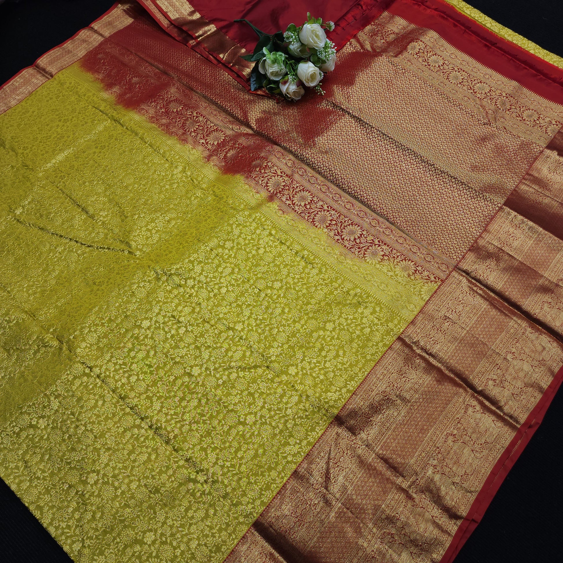 Kanchi Brocade Pattu SareeExperience the traditional elegance and richness of our Kanchi Brocade Pattu Saree. Handwoven with precision and exquisite detailing, this saree showcases the finest quality of silk and intricate patterns. Elevate your style with this luxurious and timeless piece.