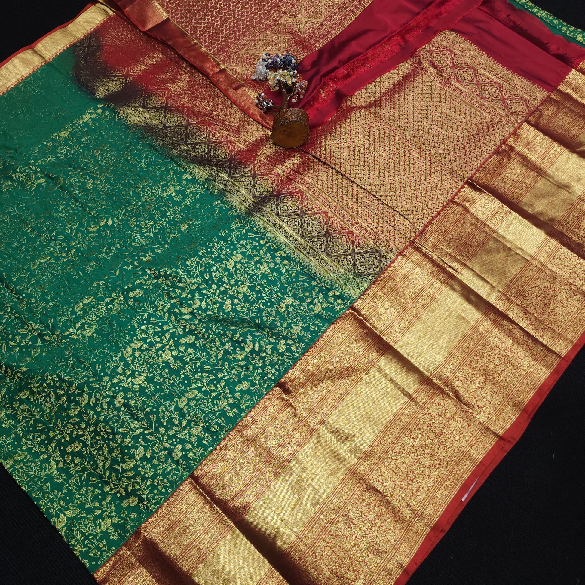 Kanchi Pattu Reshma Saree✨️This Kanchi Pattu Reshma Saree✨️ features a traditional design and high-quality silk material, providing a luxurious look for any occasion. Crafted with intricate detailing and adorned with shimmering accents, this saree exudes elegance and sophistication. Elevate your style with this timeless piece.