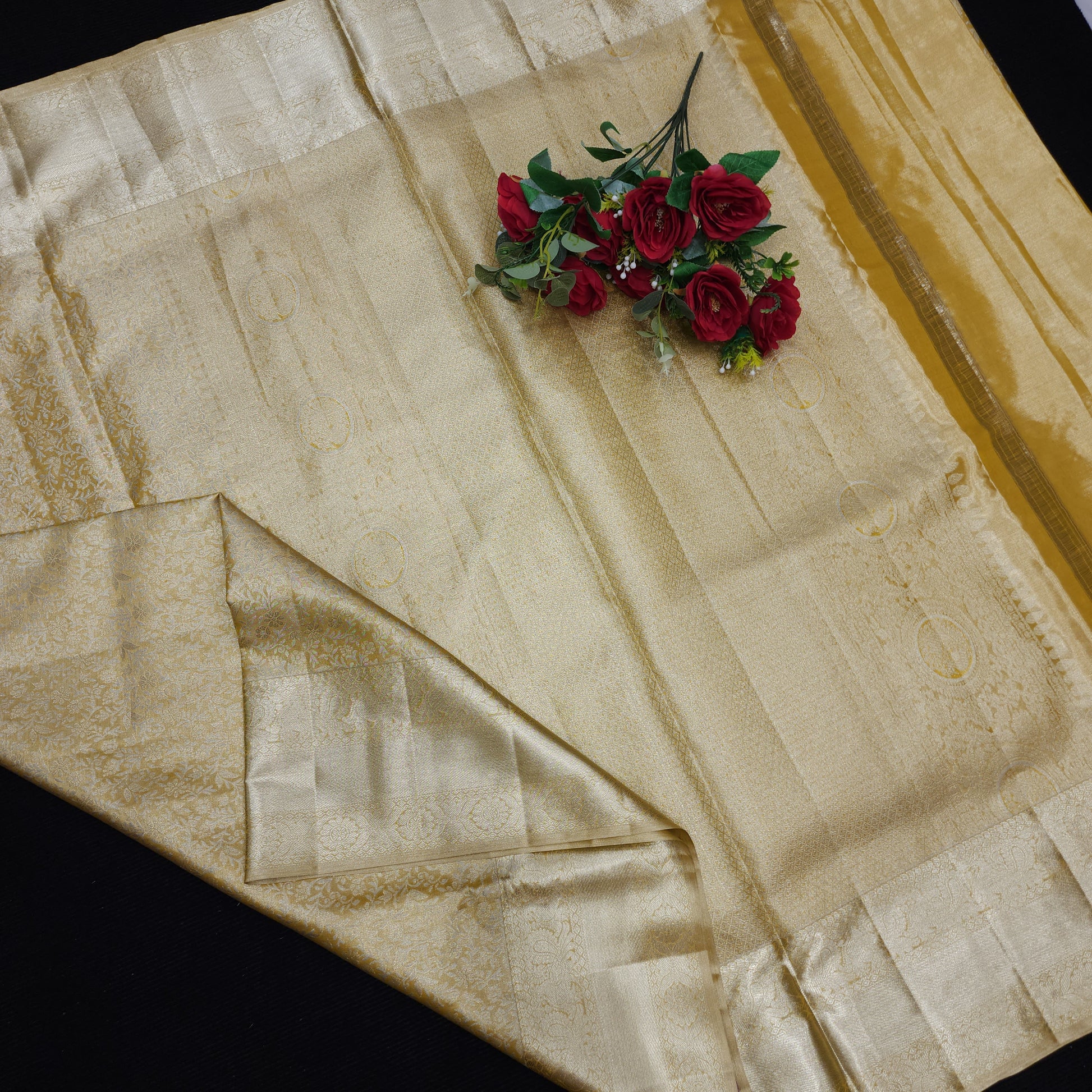 Pure Handloom Kanchi Pattu Bridal SareeExpertly crafted with pure handloom Kanchi Pattu fabric, this luxurious and timeless saree is perfect for your special day. The intricate weaving and rich colors showcase its traditional and cultural significance, making it a beautiful heirloom piece. Elevate your wedding ensemble with this exquisite saree.