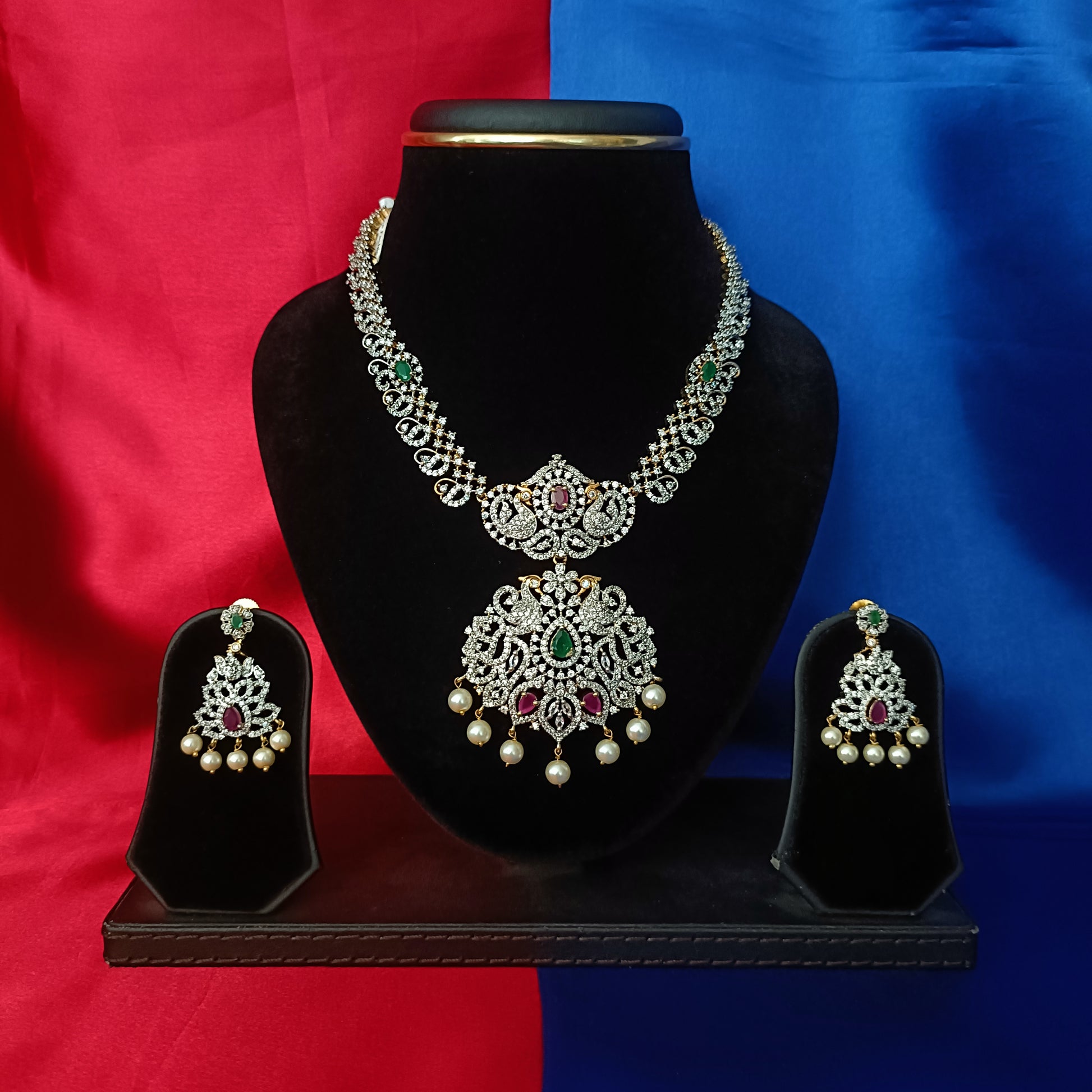 Beautiful GJ Short Necklace In Multi Colour Stone