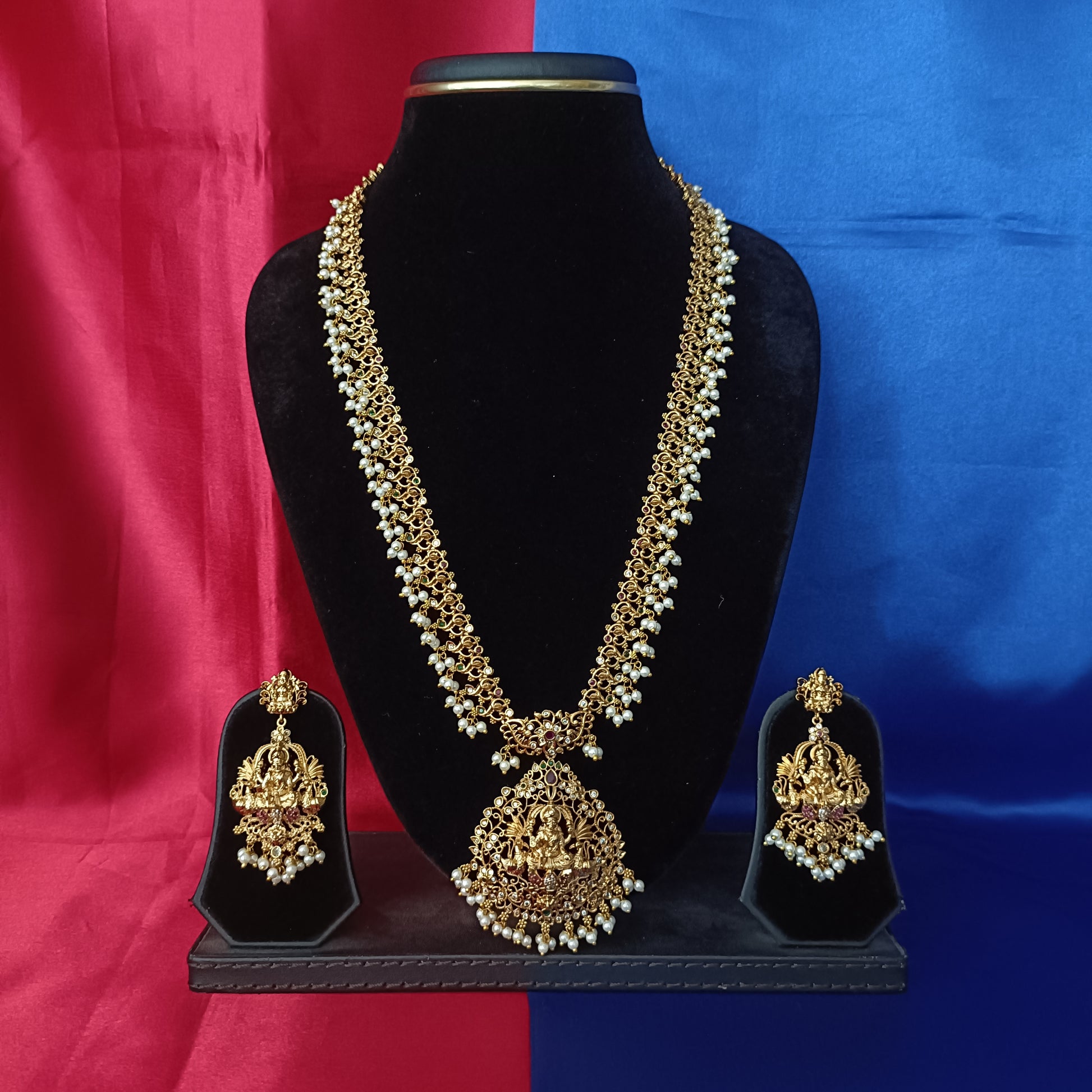 Beautiful Guttapusalu Long Necklace With Laxmi Idol