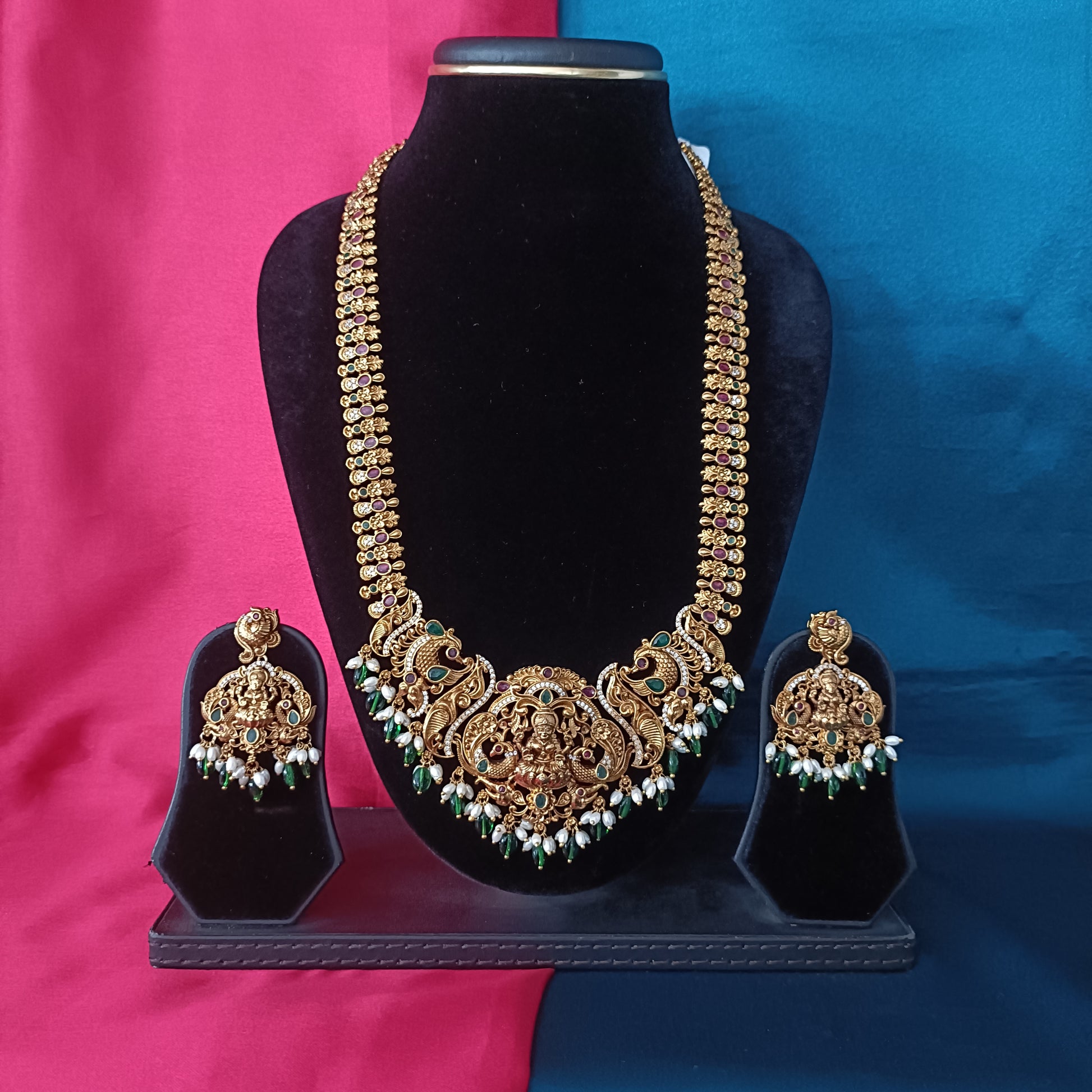 Beautiful Nakshi Long Necklace With Laxmi Idol