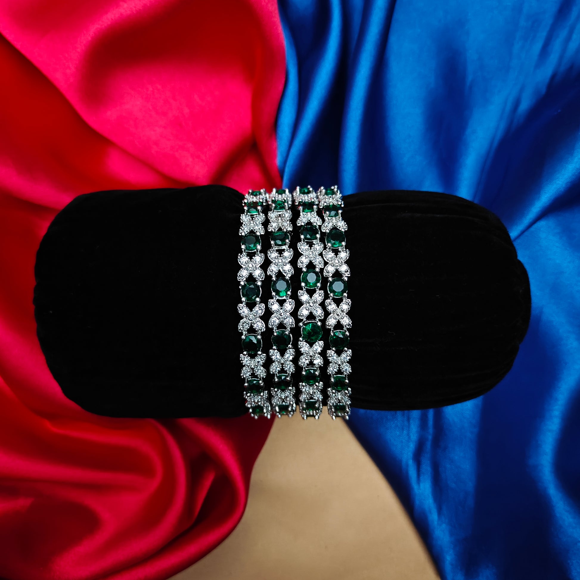 Beautiful Silver Bangle In Green Stone
