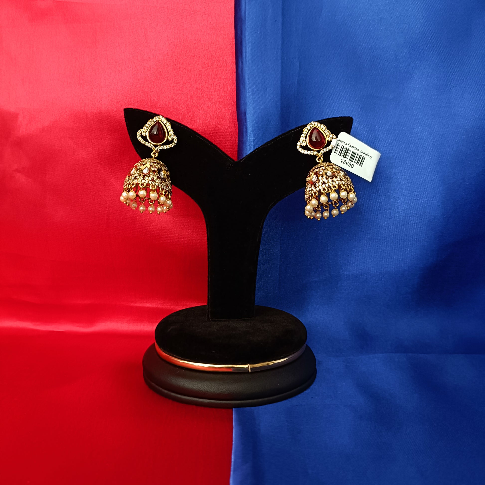 Beautiful Victorian Jhumki In Red Stone