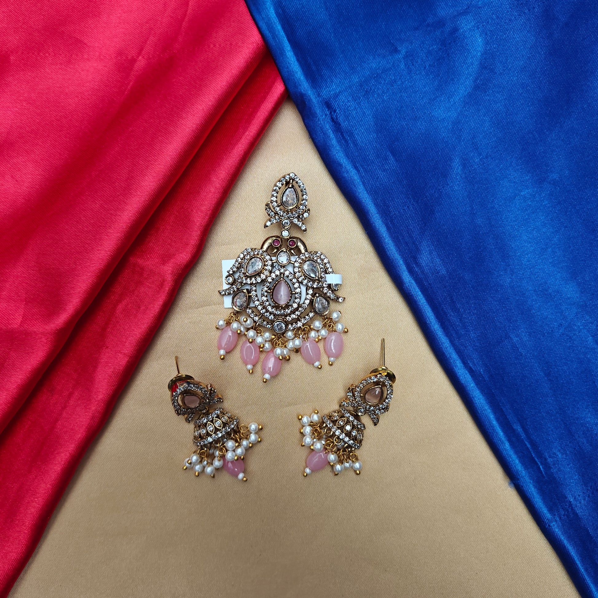 Beautiful Victorian Pendant In Baby Pink Beads