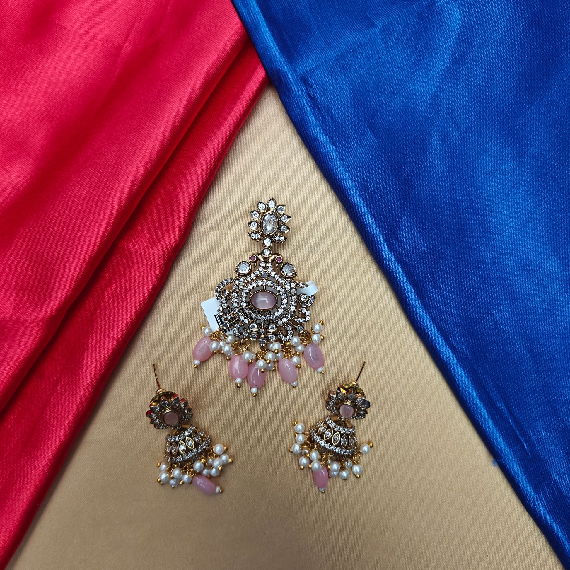 Beautiful Victorian Pendant In Baby Pink Beads