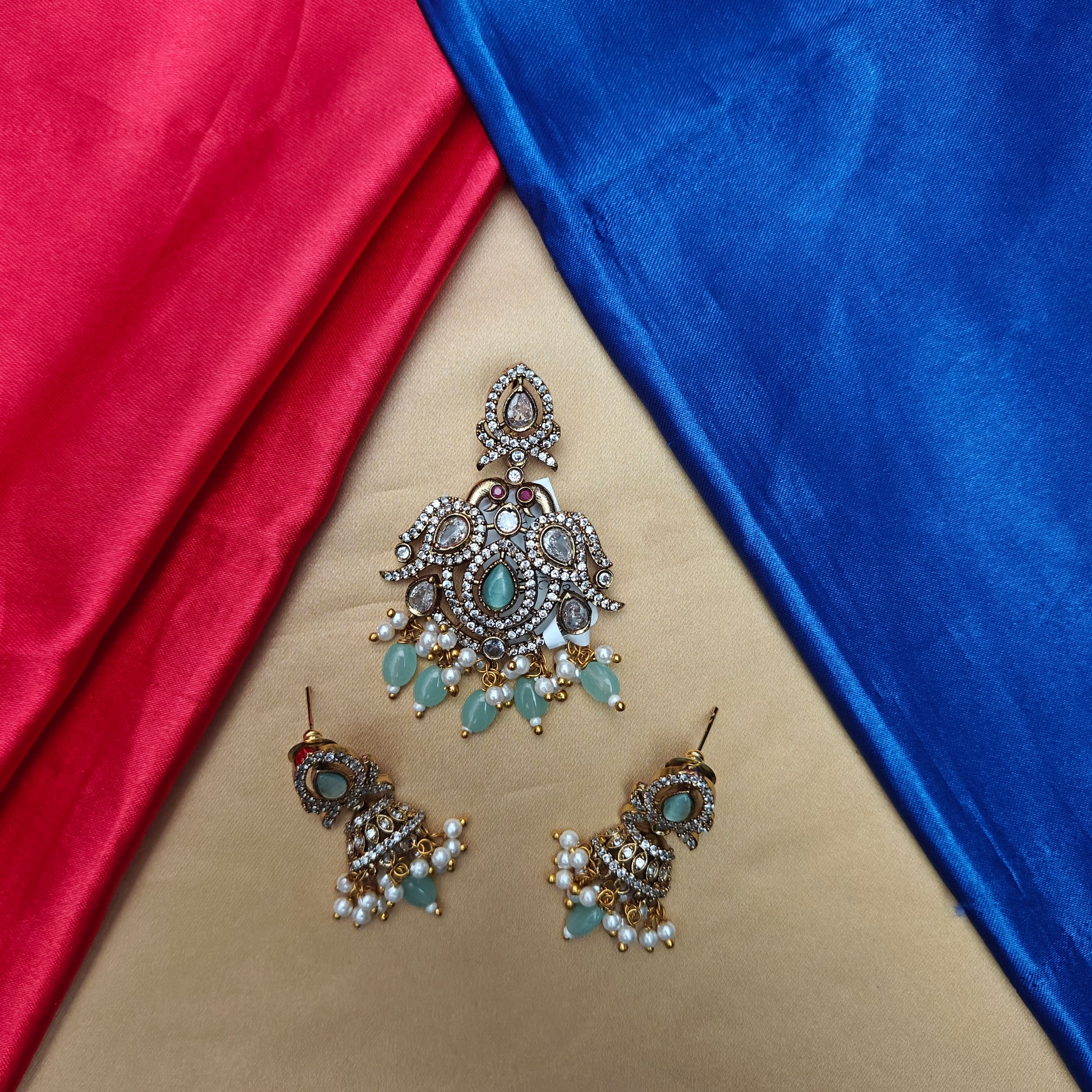 Beautiful Victorian Pendant In Pista Green Beads