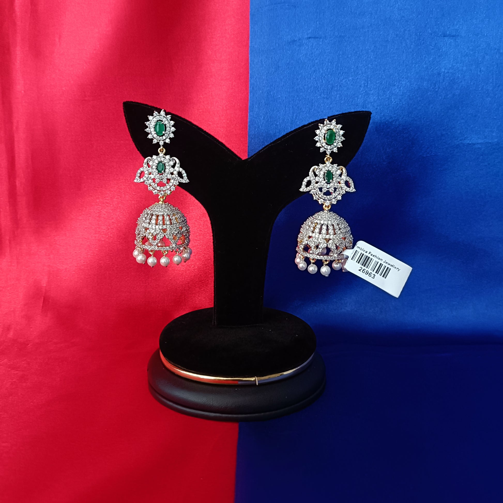 Elegant GJ Jhumki In Green Stone