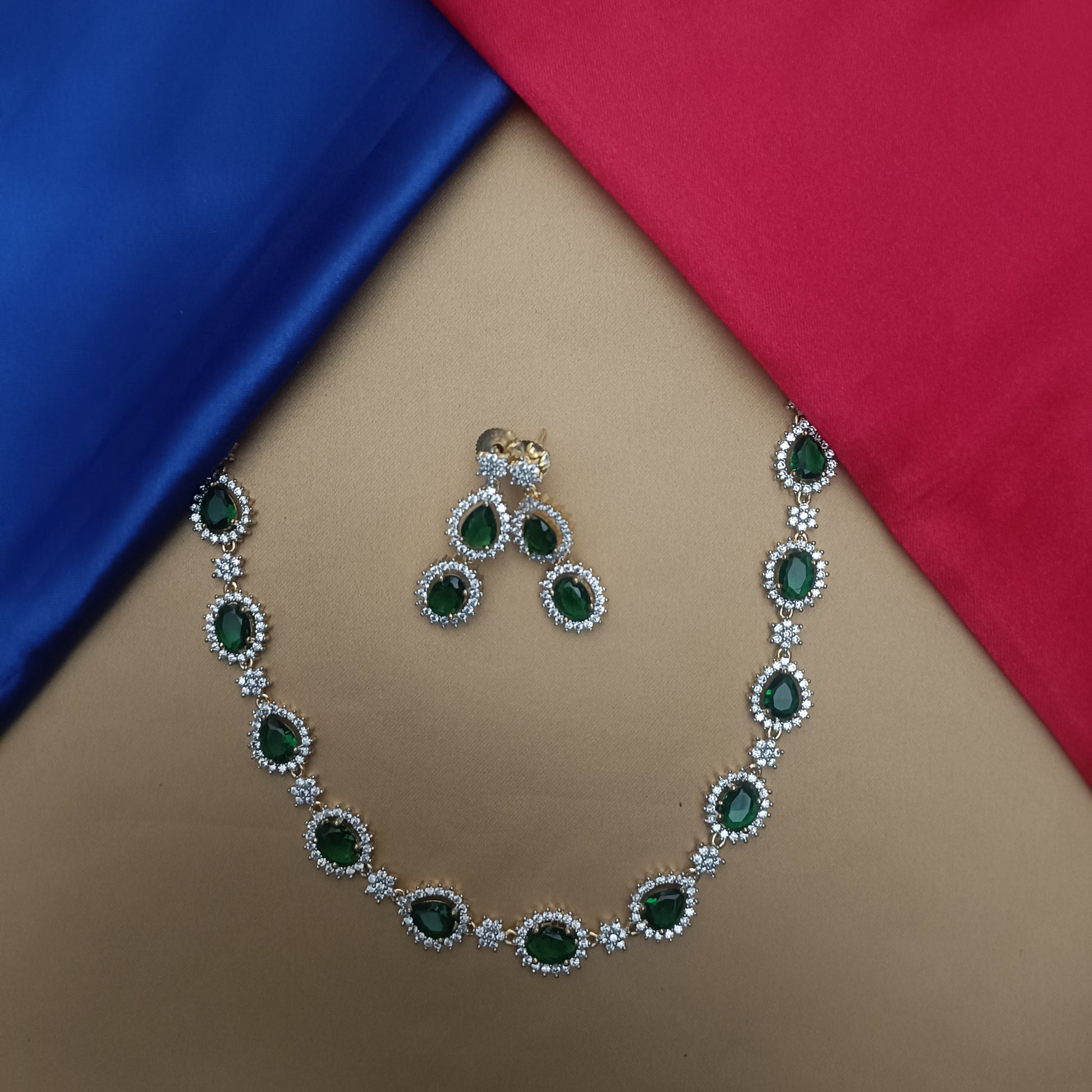 Elegant GJ Short Necklace In Green Stone