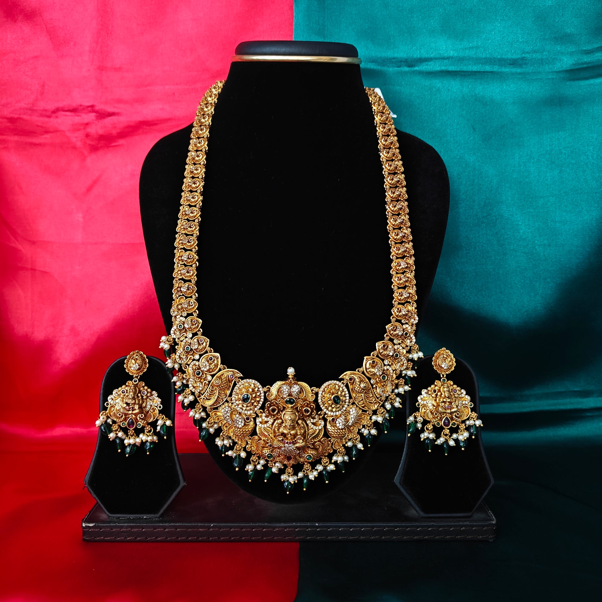 Elegant Nakshi Long Necklace With Laxmi Idol