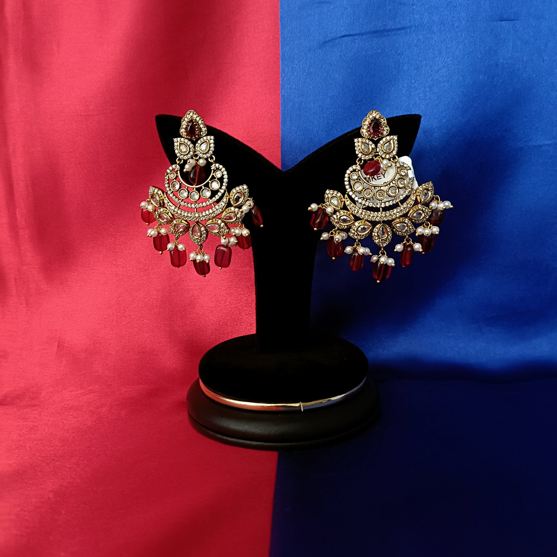 Elegant Victorian Chandbali Hanging In Maroon Beads