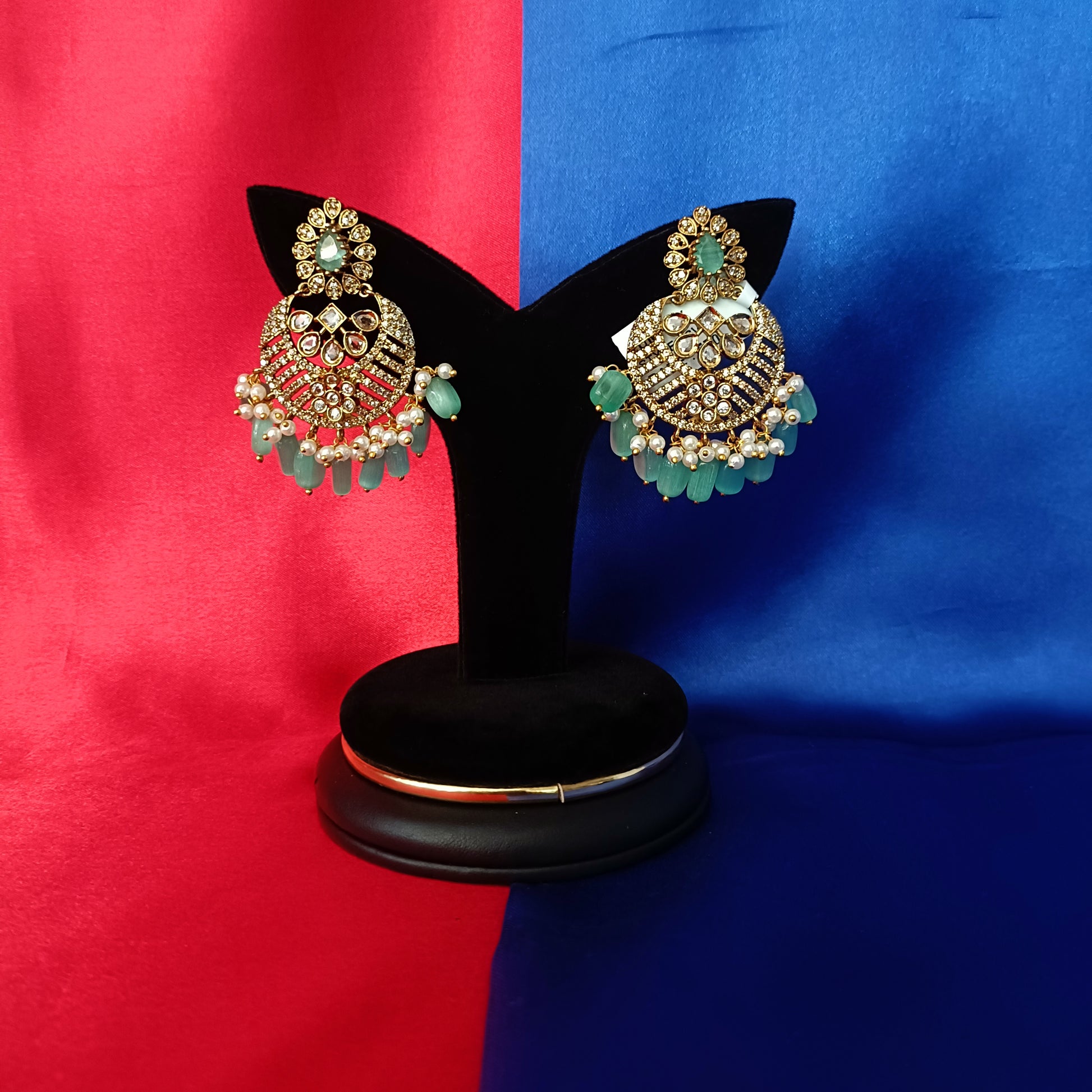 Elegant Victorian Chandbali Hanging In Pista Green Beads