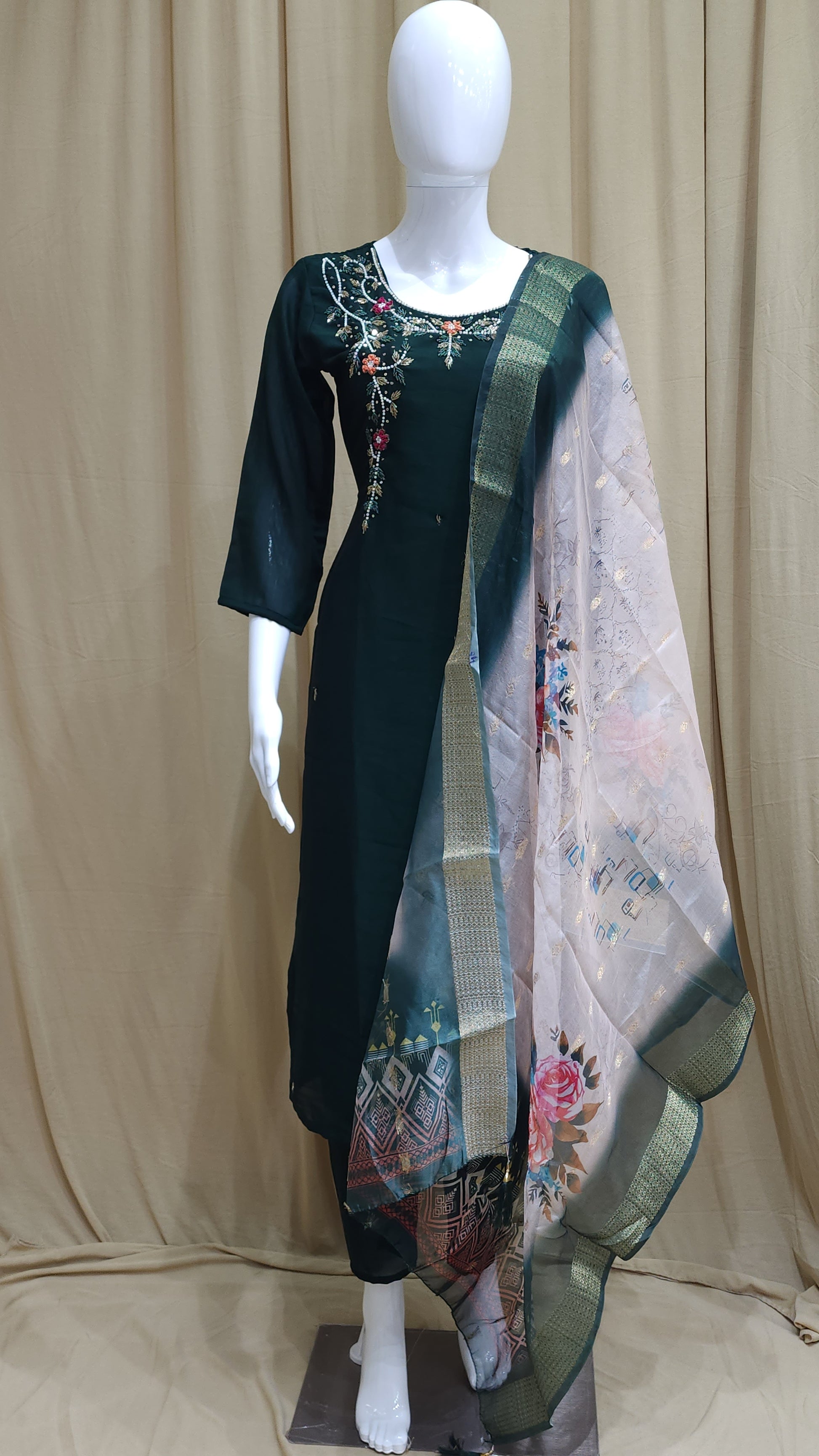 Fancy Dress Neck And Side Pulse Work 3pcs Set