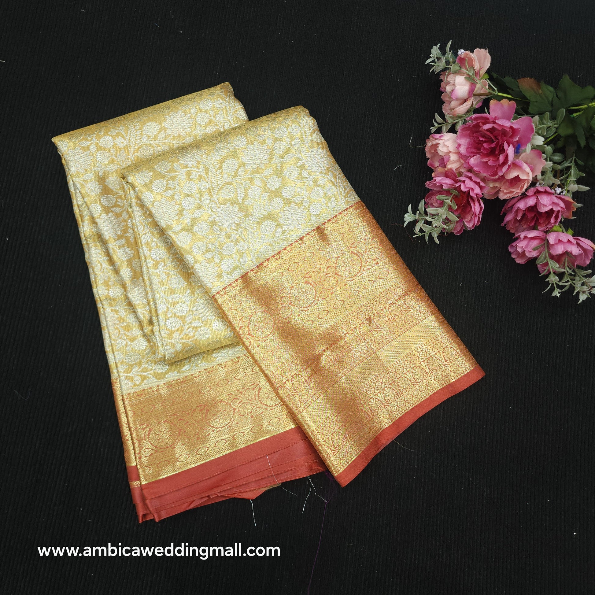 Golden Jariwarp Brocade Sarees 😍✨️PThe Golden Jariwarp Brocade Sarees are crafted with high-quality brocade fabric, featuring intricate jariwarp designs that enhance aesthetic appeal. The use of gold threads in the weave results in a luxurious finish, making these sarees suitable for formal occasions. This combination of elegance and craftsmanship ensures durability and timeless style.