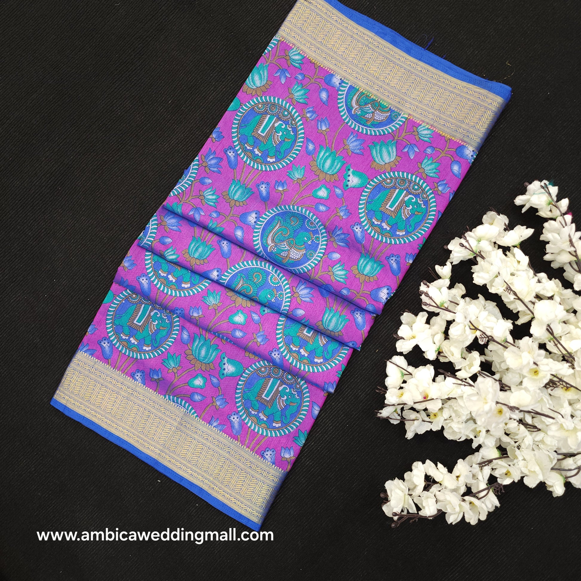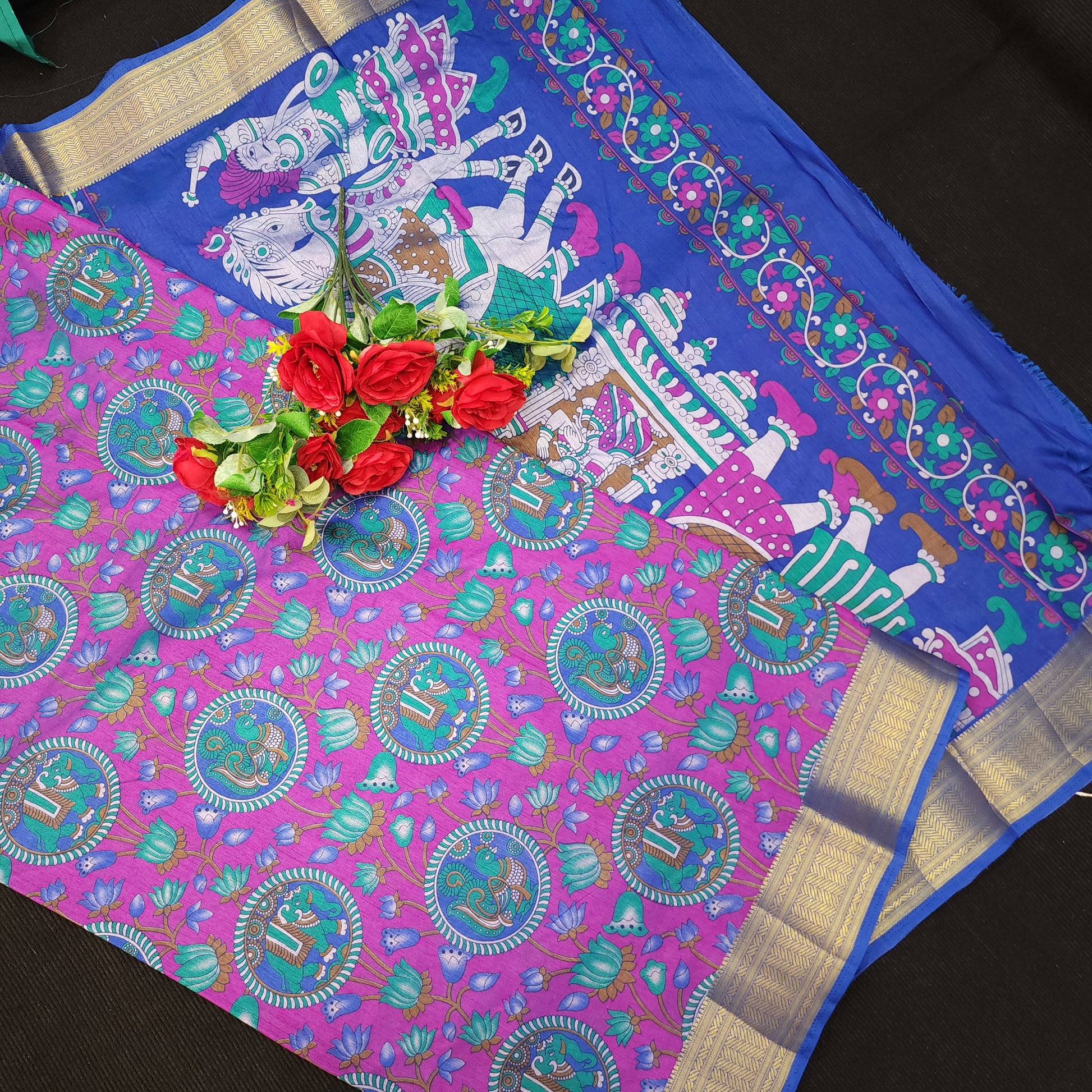 Kalamkari Fancy SareeExperience the beauty of India with our Kalamkari Fancy Saree. Made from traditional Kalamkari fabric, this saree features intricate hand-painted designs that showcase Indian heritage. The lightweight material is perfect for all-day wear. Elevate your style and embrace the art of Kalamkari.